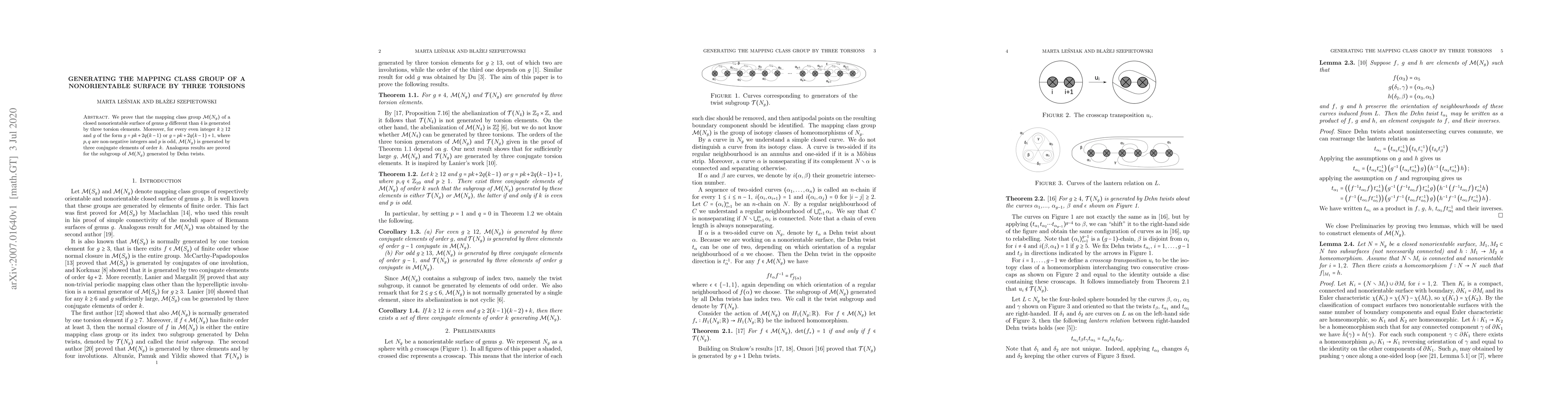 The paper presents a detailed proof of generation of the mapping class group of nonorientable surfaces by specific torsion elements, extending previous work on orientable surfaces.