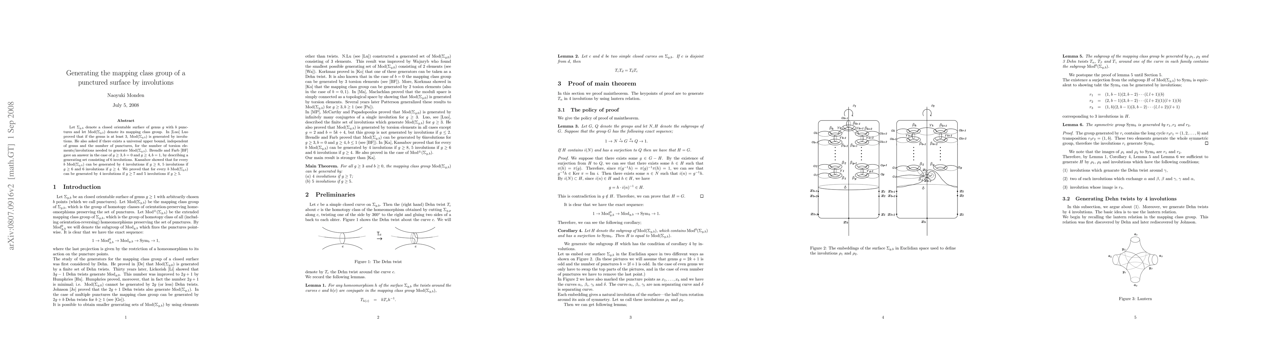 Let $\Sigma_{g,b}$ denote a closed orientable surface of genus $g$ with $b$ punctures and let $\rm Mod(\Sigma_{\textit{g,b}})$ denote its mapping class group. In [Luo] Luo proved that if the genus is at least 3, $\rm Mod(\Sigma_{\textit{g,b}})$ is generated by involutions. He also asked if there exists a universal upper bound, independent of genus and the number of punctures, for the number of torsion elements/involutions needed to generate $\rm Mod(\Sigma_{\textit{g,b}})$. Brendle and Farb [BF] gave an answer in the case of $g\geq 3, b=0$ and $g\geq 4, b=1$, by describing a generating set consisting of 6 involutions. Kassabov showed that for every $b$ $\rm Mod(\Sigma_{\textit{g,b}})$ can be generated by 4 involutions if $g\geq 8$, 5 involutions if $g\geq 6$ and 6 involutions if $g\geq 4$. We proved that for every $b$ $\rm Mod(\Sigma_{\textit{g,b}})$ can be generated by 4 involutions if $g\geq 7$ and 5 involutions if $g\geq 5$.
