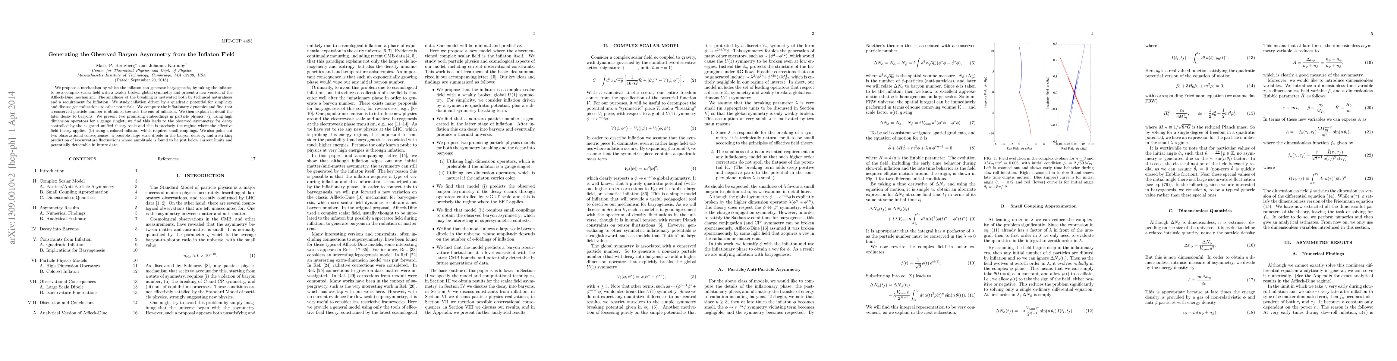 We propose a mechanism by which the inflaton can generate baryogenesis, by taking the inflaton to be a complex scalar field with a weakly broken global symmetry and present a new version of the Affleck-Dine mechanism. The smallness of the breaking is motivated both by technical naturalness and a requirement for inflation. We study inflation driven by a quadratic potential for simplicity and discuss generalizations to other potentials. We compute the inflationary dynamics and find that a conserved particle number is obtained towards the end of inflation. We then explain in detail the later decay to baryons. We present two promising embeddings in particle physics: (i) using high dimension operators for a gauge singlet; we find this leads to the observed asymmetry for decay controlled by the ~ grand unified theory scale and this is precisely the regime where the effective field theory applies. (ii) using a colored inflaton, which requires small couplings. We also point out two observational consequences: a possible large scale dipole in the baryon density, and a striking prediction of isocurvature fluctuations whose amplitude is found to be just below current limits and potentially detectable in future data.