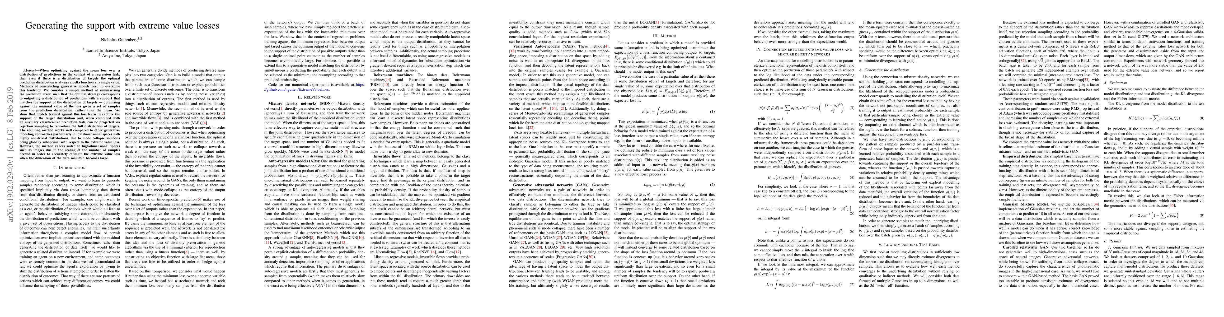 When optimizing against the mean loss over a distribution of predictions in the context of a regression task, then even if there is a distribution of targets the optimal prediction distribution is always a delta function at a single value. Methods of constructing generative models need to overcome this tendency. We consider a simple method of summarizing the prediction error, such that the optimal strategy corresponds to outputting a distribution of predictions with a support that matches the support of the distribution of targets --- optimizing against the minimal value of the loss given a set of samples from the prediction distribution, rather than the mean. We show that models trained against this loss learn to capture the support of the target distribution and, when combined with an auxiliary classifier-like prediction task, can be projected via rejection sampling to reproduce the full distribution of targets. The resulting method works well compared to other generative modeling approaches particularly in low dimensional spaces with highly non-trivial distributions, due to mode collapse solutions being globally suboptimal with respect to the extreme value loss. However, the method is less suited to high-dimensional spaces such as images due to the scaling of the number of samples needed in order to accurately estimate the extreme value loss when the dimension of the data manifold becomes large.
