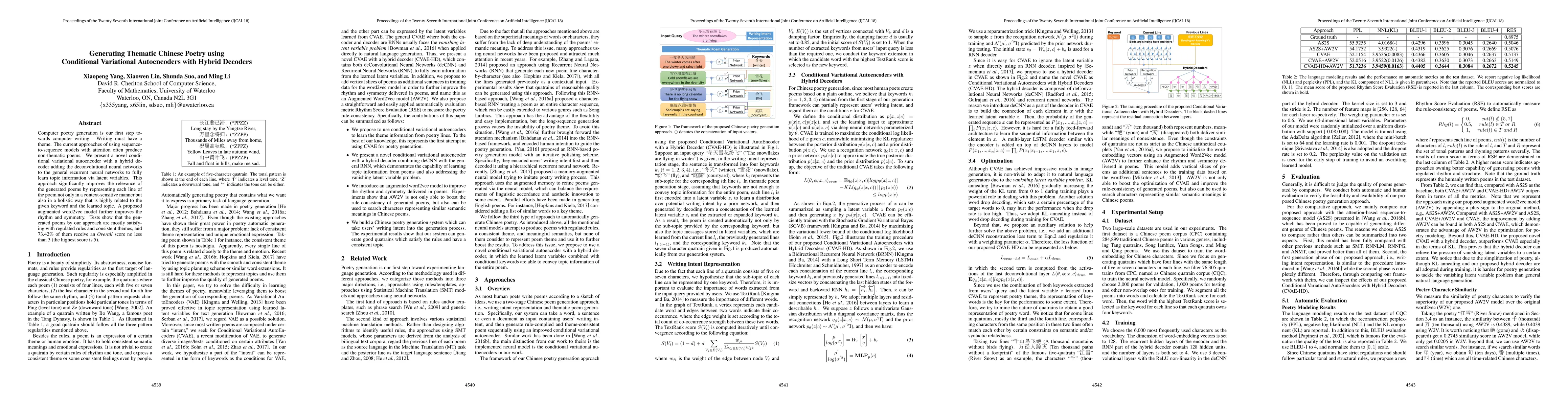 Researchers developed a method to generate thematic Chinese poetry using conditional variational autoencoders with hybrid decoders, producing poems with 73.42% receiving an Overall score of 3 or higher.