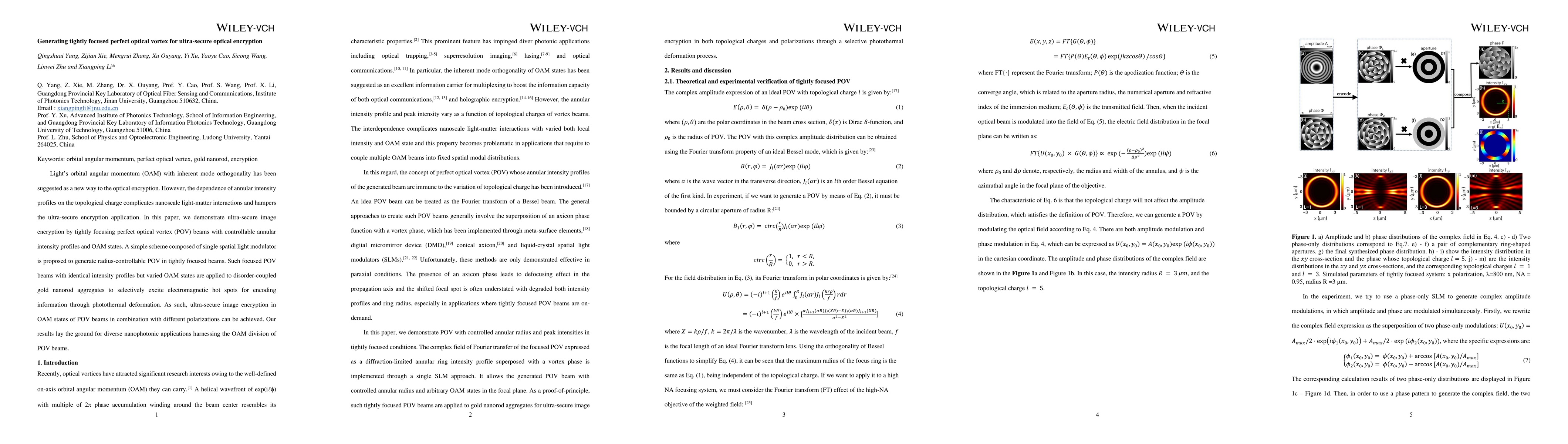 This paper proposes a method for ultra-secure optical encryption using tightly focused perfect optical vortex (POV) beams with controllable annular intensity profiles and orbital angular momentum (OAM) states. The scheme employs a single spatial light modulator to generate radius-controllable POV beams, which are used to encode information through selective excitation of electromagnetic hot spots in gold nanorod aggregates.