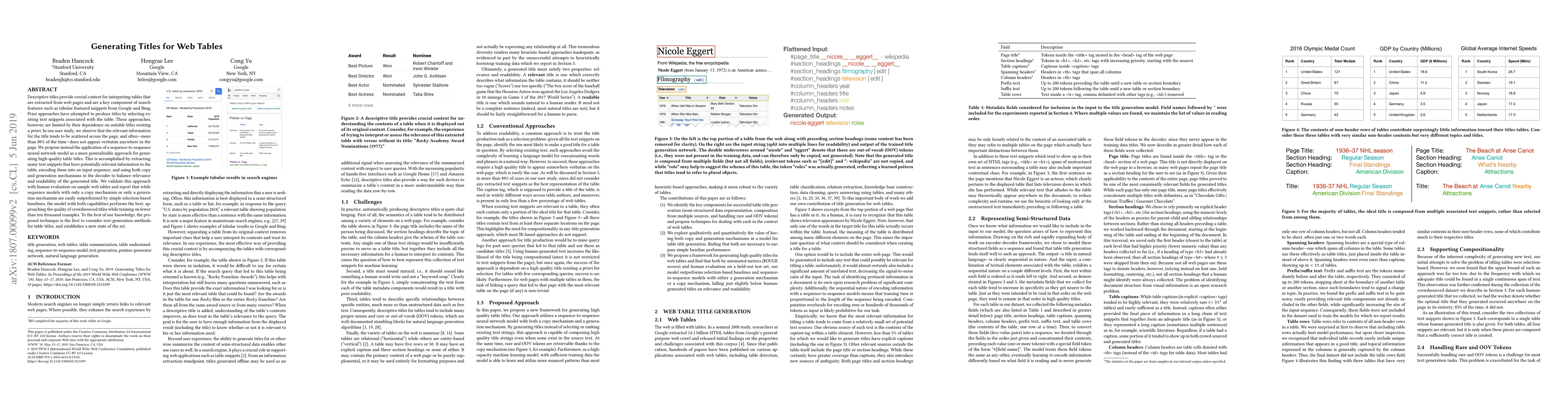A new approach to generating table titles for web tables uses a sequence-to-sequence neural network model that outperforms previous methods and achieves quality comparable to crowdsourced titles with minimal training data.