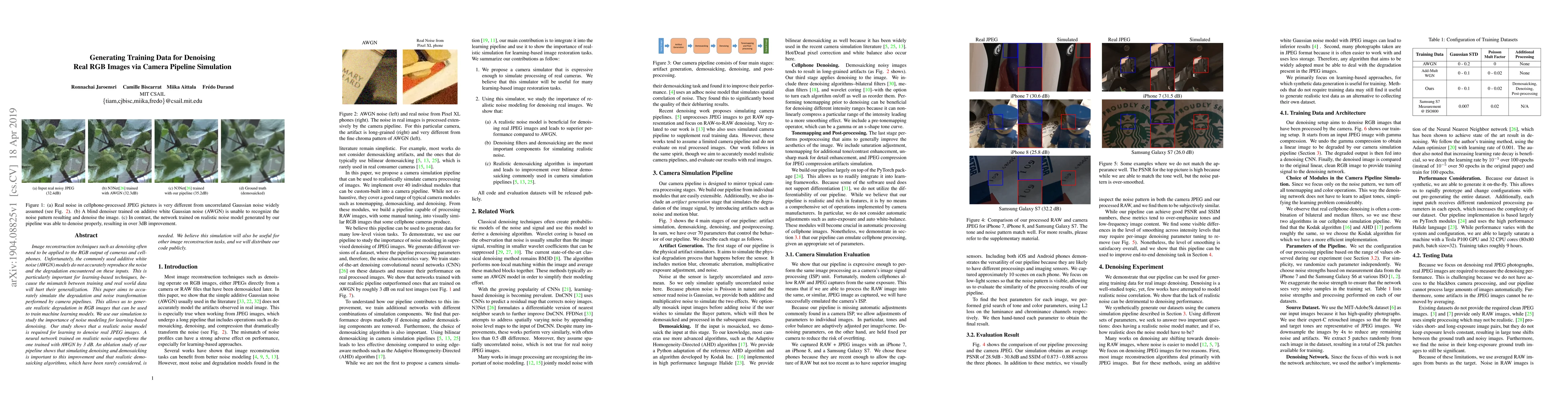 This paper develops a camera pipeline simulation to generate realistic noise and degradation for training denoising models, showing that such a model improves denoising performance by 3 dB compared to traditional AWGN models. The study highlights the importance of simulating denoising and demosaicking processes for better generalization.