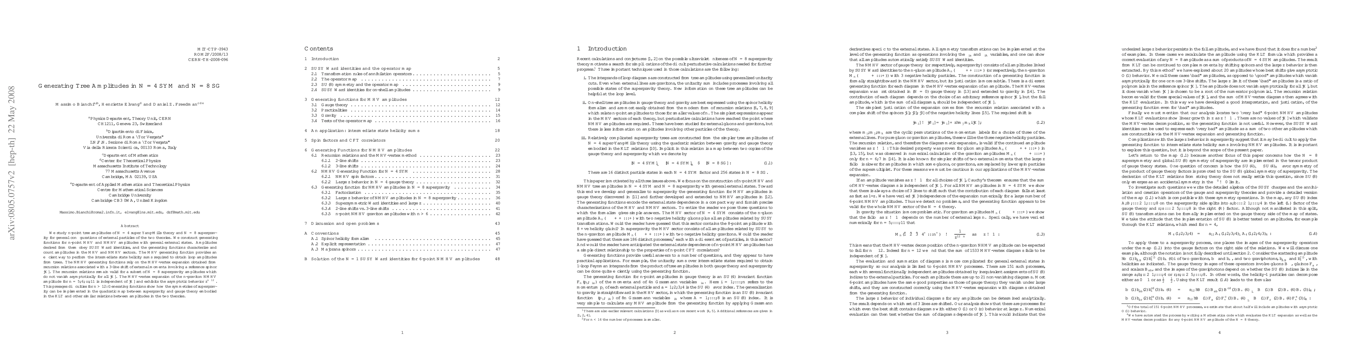 We study n-point tree amplitudes of N=4 super Yang-Mills theory and N=8 supergravity for general configurations of external particles of the two theories. We construct generating functions for n-point MHV and NMHV amplitudes with general external states. Amplitudes derived from them obey SUSY Ward identities, and the generating functions characterize and count amplitudes in the MHV and NMHV sectors. The MHV generating function provides an efficient way to perform the intermediate state helicity sums required to obtain loop amplitudes from trees. The NMHV generating functions rely on the MHV-vertex expansion obtained from recursion relations associated with a 3-line shift of external momenta involving a reference spinor |X]. The recursion relations remain valid for a subset of N=8 supergravity amplitudes which do not vanish asymptotically for all |X]. The MHV-vertex expansion of the n-graviton NMHV amplitude for n=5,6,...,11 is independent of |X] and exhibits the asymptotic behavior z^{n-12}. This presages difficulties for n > 12. Generating functions show how the symmetries of supergravity can be implemented in the quadratic map between supergravity and gauge theory embodied in the KLT and other similar relations between amplitudes in the two theories.
