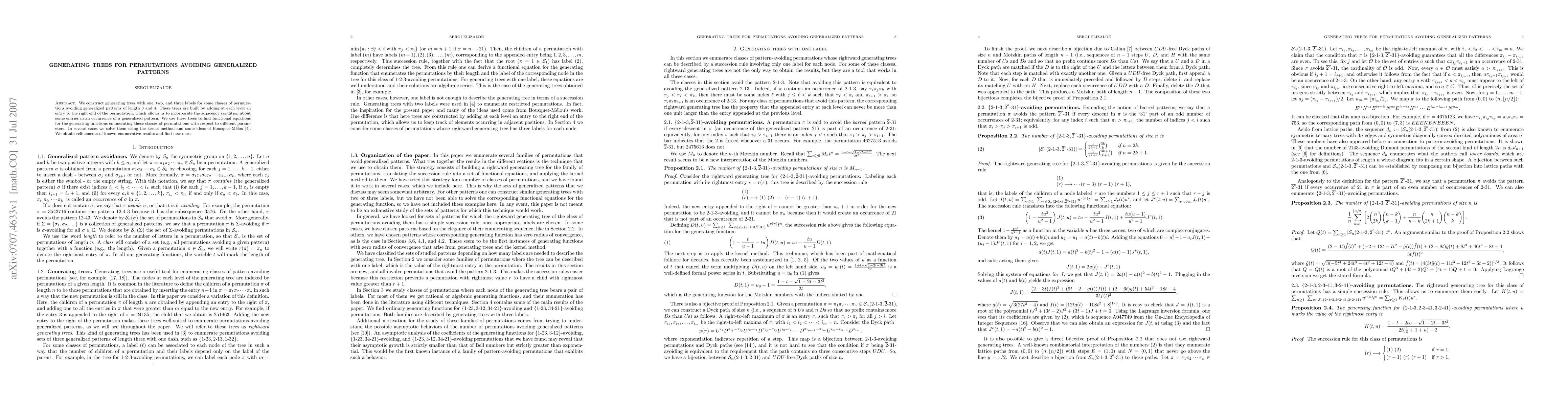 This paper constructs generating trees for permutations that avoid generalized patterns of length 3 and 4, solving functional equations for their generating functions and obtaining both refinements and new enumerative results. The trees incorporate adjacency conditions in pattern occurrences and utilize the kernel method for solution.