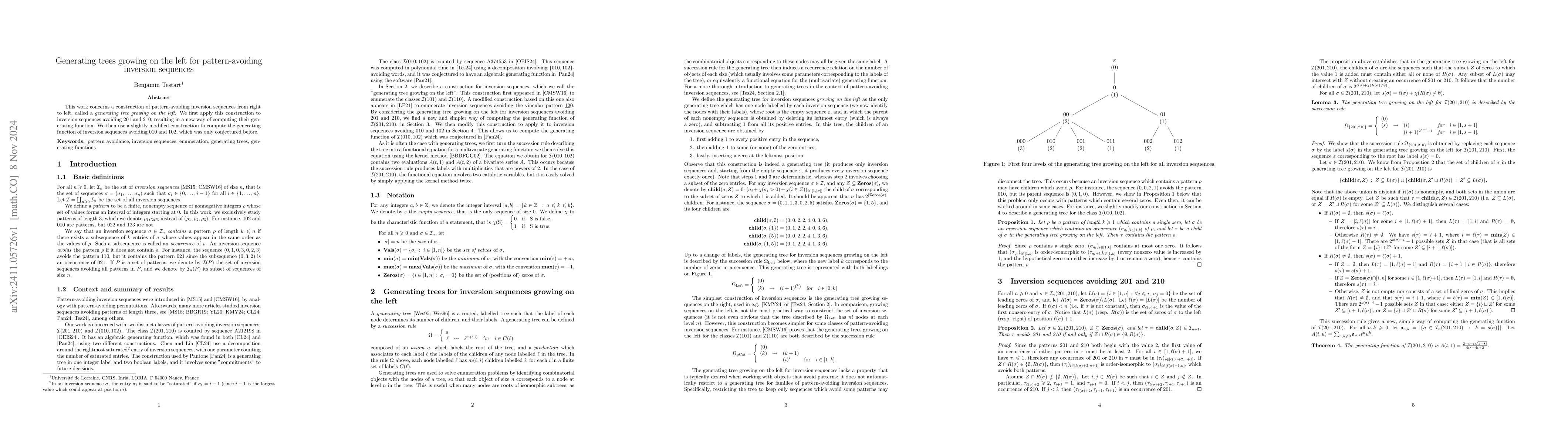 This work concerns a construction of pattern-avoiding inversion sequences from right to left, called a generating tree growing on the left. We first apply this construction to inversion sequences avoiding 201 and 210, resulting in a new way of computing their generating function. We then use a slightly modified construction to compute the generating function of inversion sequences avoiding 010 and 102, which was only conjectured before.