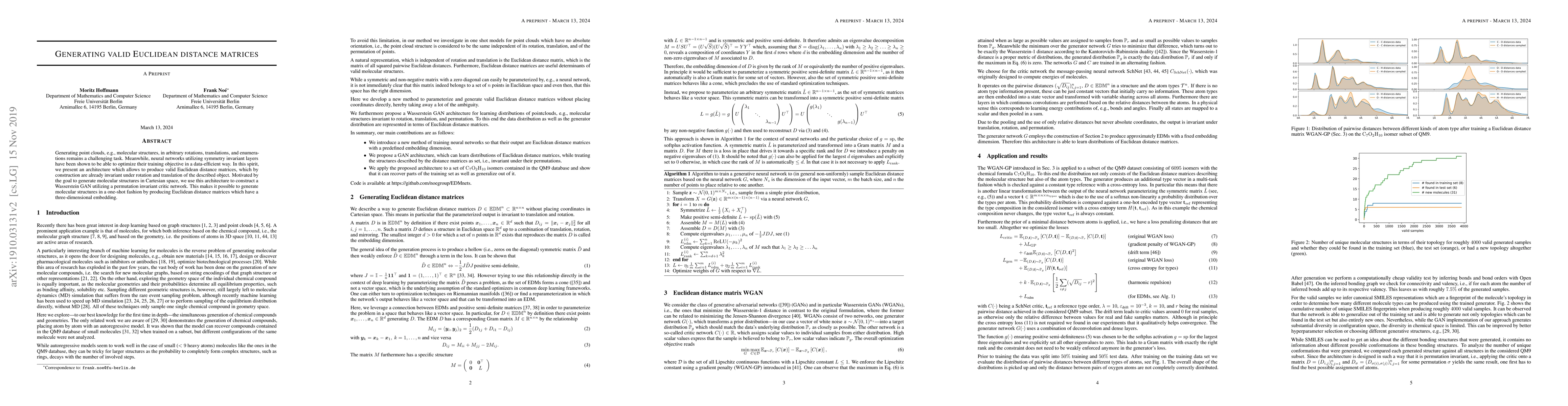The research introduces a unique method for generating point clouds by producing valid Euclidean distance matrices, which are inherently invariant to rotations and translations, and applies it to molecular structure generation.