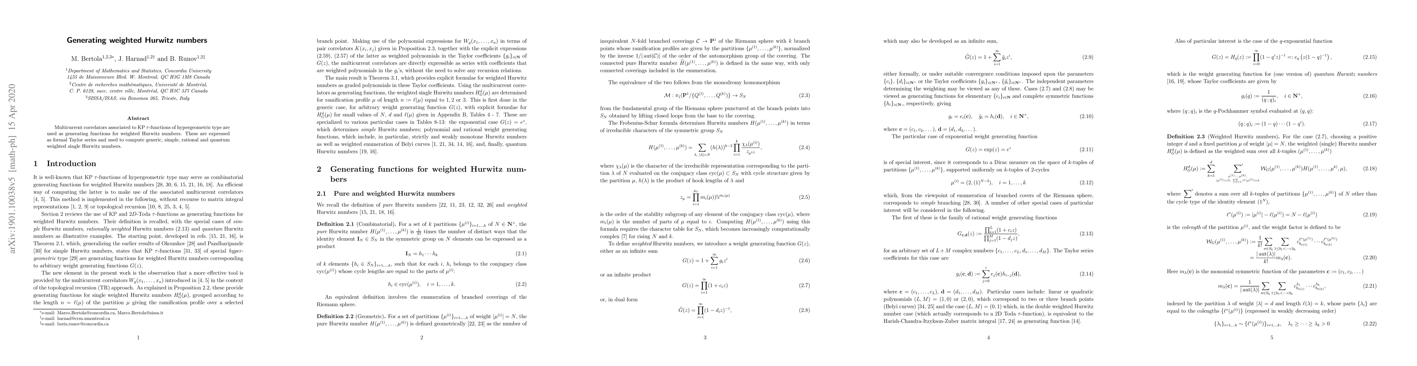 This paper introduces multicurrent correlators linked to KP τ-functions of hypergeometric type to generate weighted Hurwitz numbers, expressed as formal Taylor series, for computing various types of weighted single Hurwitz numbers.