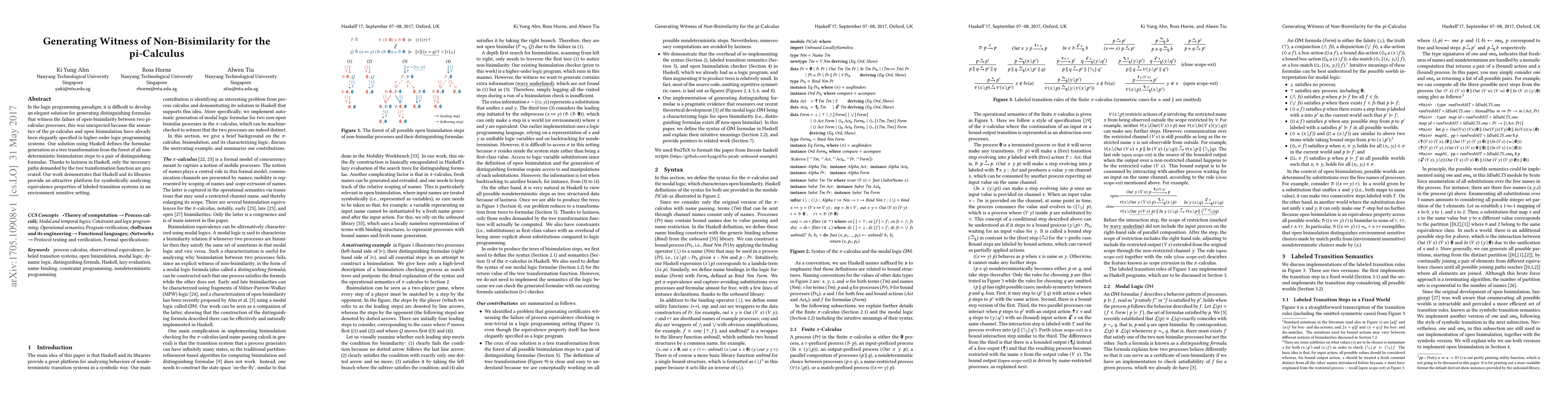 Researchers developed a method in Haskell to generate witness formulae for non-bisimilarity in pi-calculus processes, improving the analysis of equivalence properties in labeled transition systems.