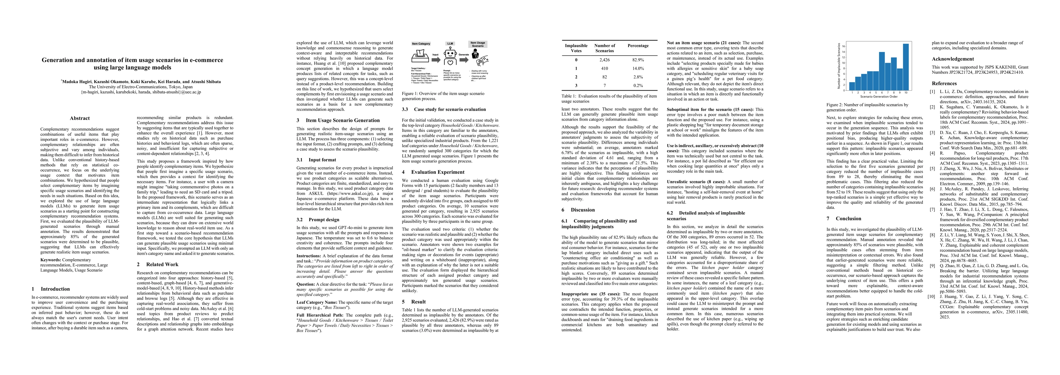 A framework for generating and evaluating item usage scenarios using LLMs, enabling scenario-based complementary recommendations that capture contextual usage patterns.