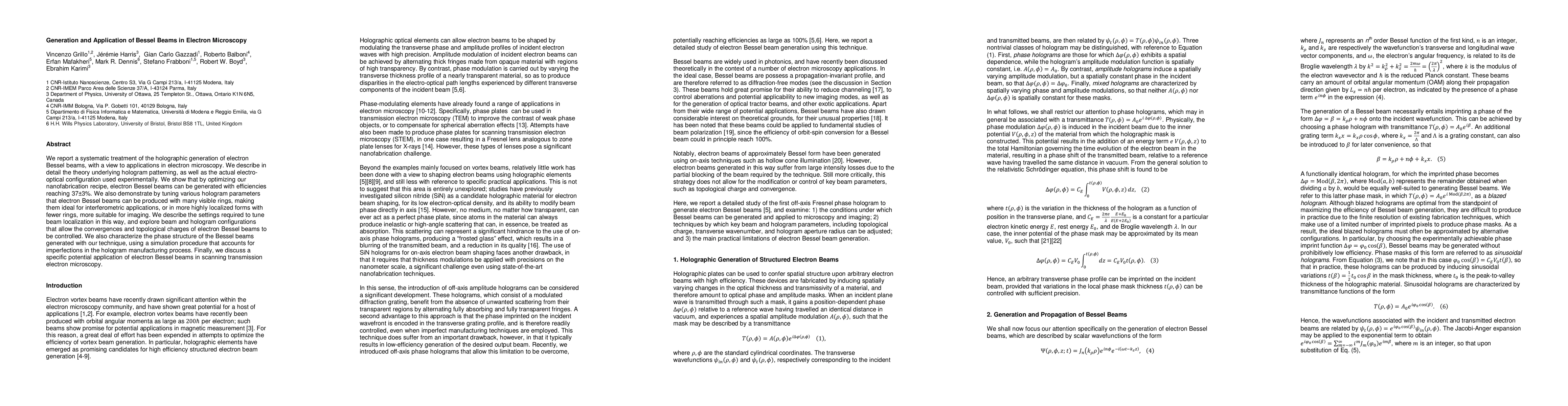 This paper details the generation of electron Bessel beams using holographic techniques and explores their optimization for electron microscopy applications. The study achieves high efficiency and tunable localization of these beams, which are shown to be ideal for interferometry and imaging, and discusses their potential use in scanning transmission electron microscopy.