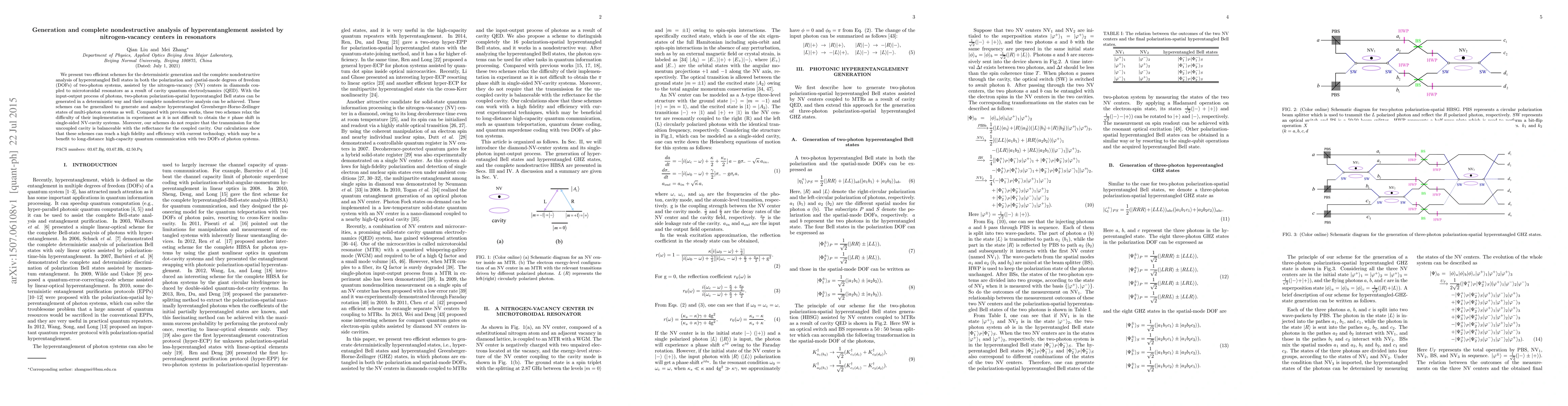 This paper proposes two efficient schemes for generating and analyzing hyperentangled Bell states using nitrogen-vacancy centers in diamonds coupled to microtoroidal resonators. The schemes achieve high fidelity and efficiency, potentially benefiting long-distance quantum communication.
