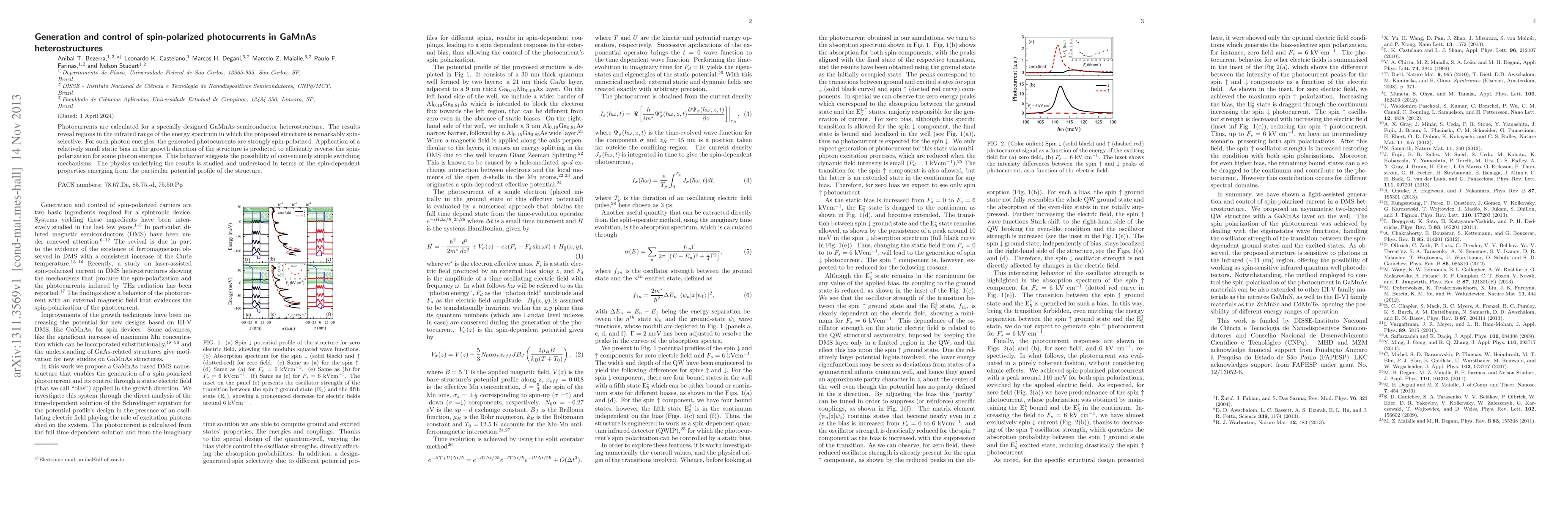 This paper investigates GaMnAs semiconductor heterostructures, revealing spin-selective infrared photocurrents with strong spin-polarization. A small static bias can reverse the spin-polarization, suggesting potential for simple switching mechanisms, underpinned by the structure's unique spin-dependent potential profile.