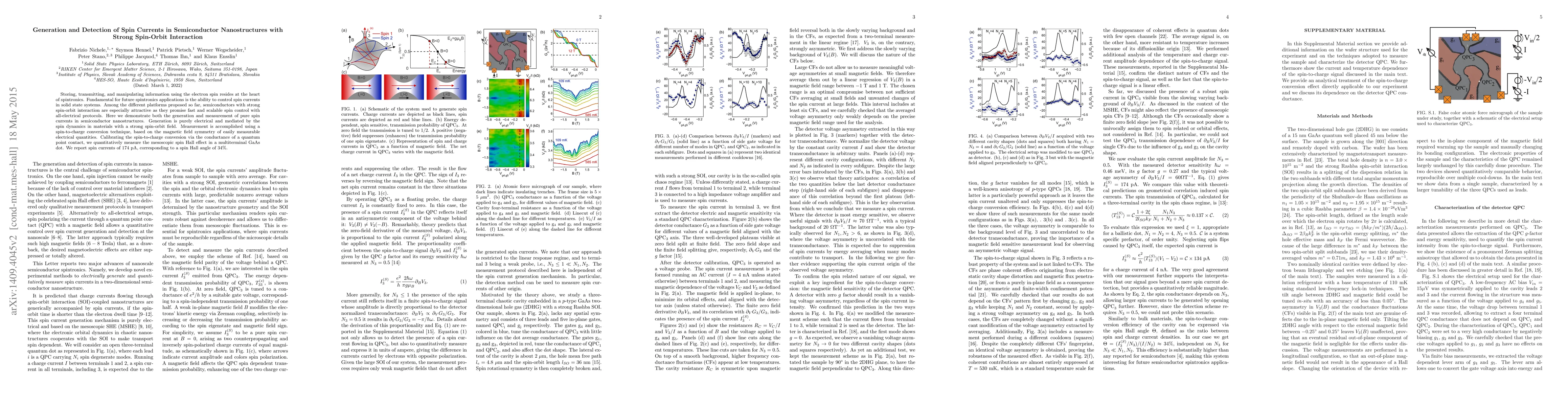 This paper demonstrates the generation and detection of spin currents in semiconductor nanostructures with strong spin-orbit interaction, showcasing an all-electrical method for spin current generation and a spin-to-charge conversion technique for measurement, reporting a spin Hall angle of 34% in a GaAs dot.