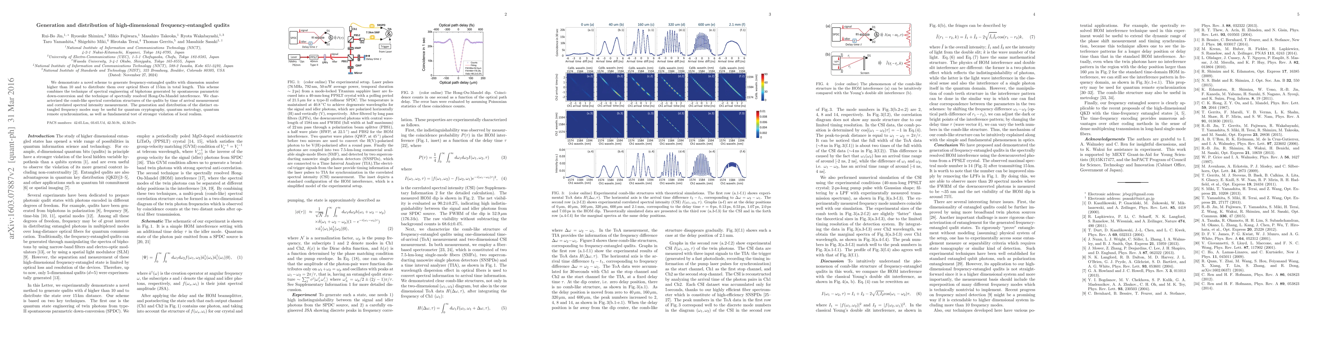 This paper presents a method for generating and distributing high-dimensional frequency-entangled qudits over 15 km of optical fibers, combining spectral engineering and spectrally resolved Hong-Ou-Mandel interference. The potential applications include quantum cryptography, quantum metrology, and tests of local realism.