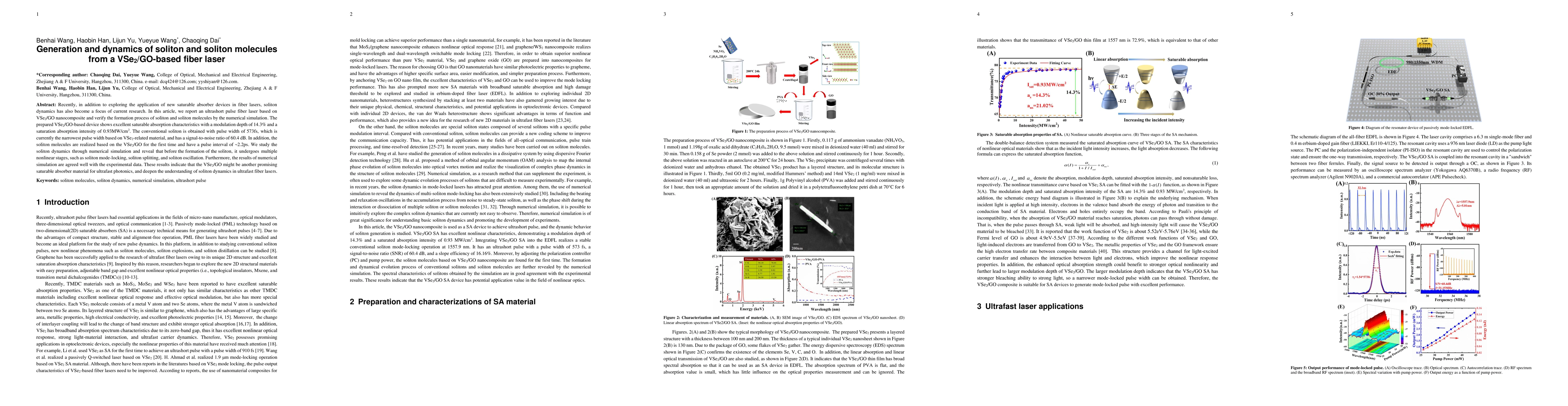 This paper reports an ultrashort pulse fiber laser utilizing VSe2/GO nanocomposite, achieving the narrowest pulse width of 573fs based on VSe2 material. The study verifies the formation of solitons and soliton molecules through numerical simulation, revealing complex nonlinear dynamics preceding soliton formation.