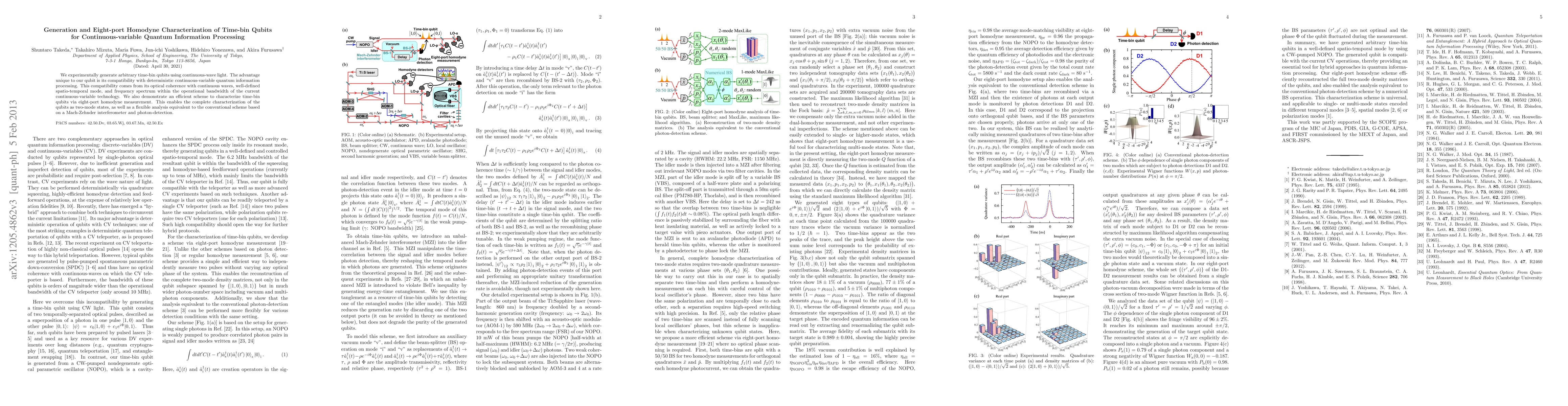 This paper presents the generation of arbitrary time-bin qubits using continuous-wave light, highlighting their compatibility with continuous-variable quantum information processing. It also introduces an eight-port homodyne measurement scheme for complete characterization of these qubits.