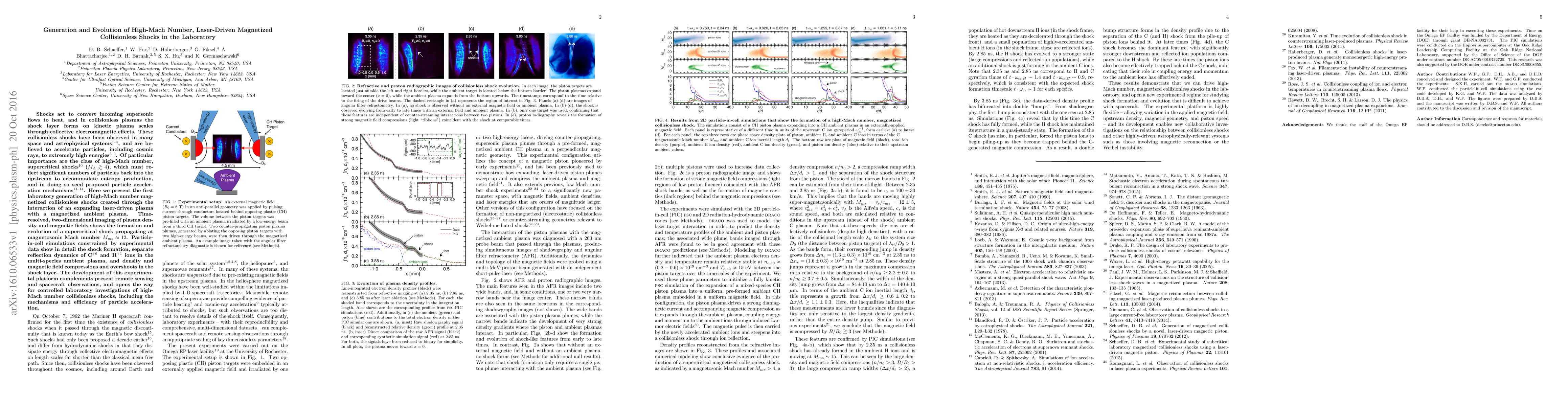 This paper reports the first laboratory generation of high-Mach number, magnetized collisionless shocks using laser-driven plasma interactions. The study provides detailed imaging and simulations showing the formation and evolution of a supercritical shock at $M_{ms}\approx12$, and explores the dynamics of ion reflection and shock layer properties, advancing our understanding of particle acceleration mechanisms in astrophysical contexts.