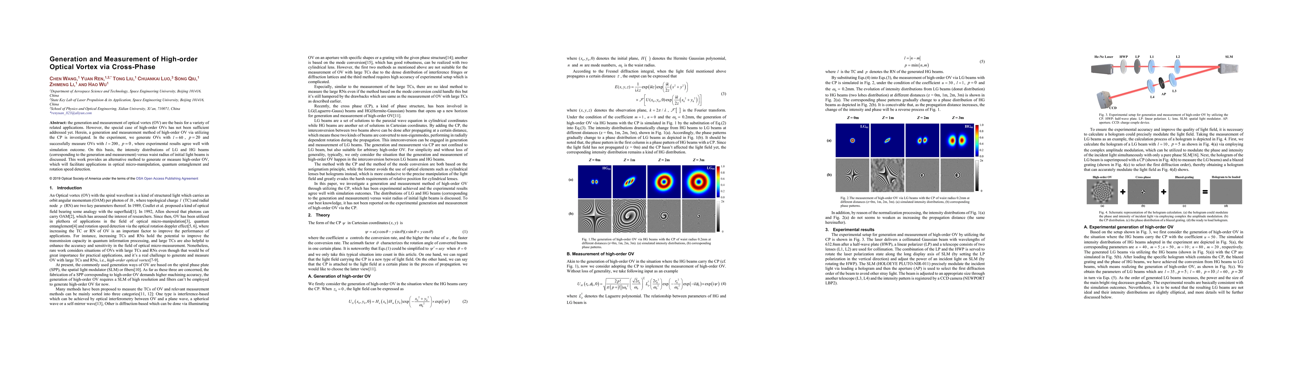 The generation and measurement of optical vortex (OV) are the basis for a variety of related applications. However, the special case of high-order OVs has not been sufficient addressed yet. Herein, a generation and measurement method of high-order OV via utilizing the CP is investigated. In the experiment, we generate OVs with l=60, p=20 and successfully measure OVs with l=200,p=0, where experimental results agree well with simulation outcome. On this basis, the intensity distributions of LG and HG beams (corresponding to the generation and measurement) versus waist radius of initial light beams is discussed. This work provides an alternative method to generate or measure high-order OV, which will facilitate applications in optical micro-manipulation, quantum entanglement and rotation speed detection.