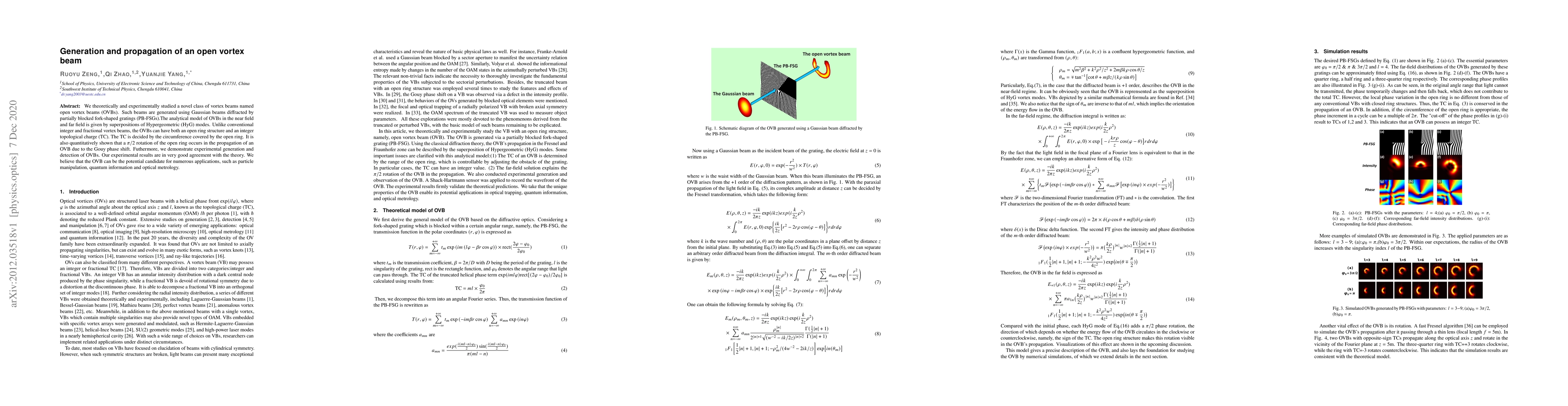 This paper presents theoretical and experimental studies on open vortex beams (OVBs), generated via Gaussian beams diffracted by partially blocked fork-shaped gratings. The OVBs exhibit unique properties, including an open ring structure and an integer topological charge, and demonstrate a $\pi/2$ rotation due to the Gouy phase shift during propagation.