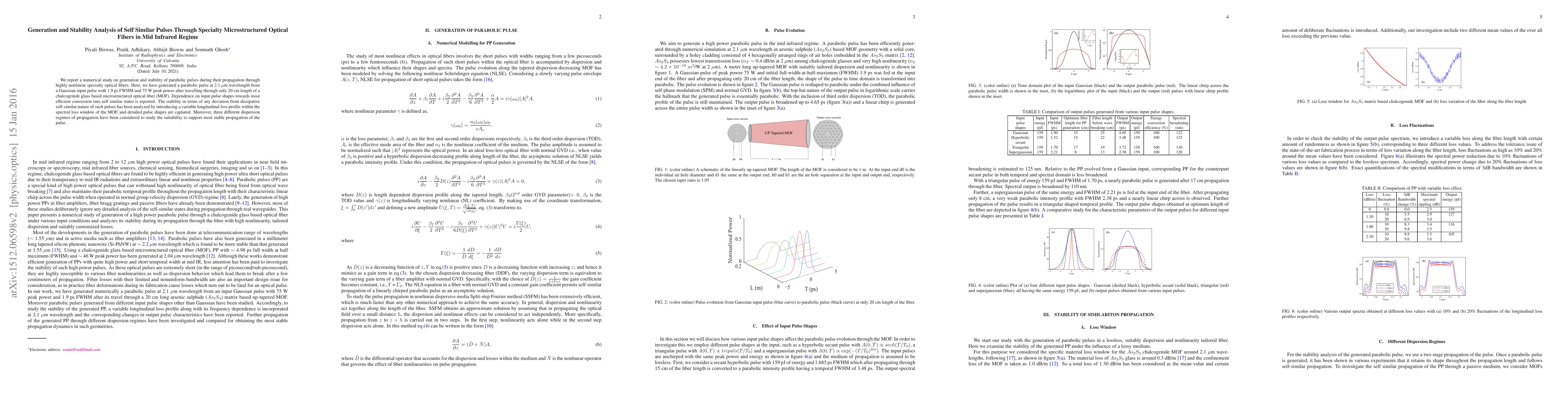 We report a numerical study on generation and stability of parabolic pulses during their propagation through highly nonlinear specialty optical fibers. Here, we have generated a parabolic pulse at 2.1 $\mu$m wavelength from a Gaussian input pulse with 1.9 ps FWHM and 75 W peak power after travelling through only 20 cm length of a chalcogenide glass based microstructured optical fiber (MOF). Dependence on input pulse shapes towards most efficient conversion into self similar states is reported. The stability in terms of any deviation from dissipative self-similar nature of such pulses has been analyzed by introducing a variable longitudinal loss profile within the spectral loss window of the MOF, and detailed pulse shapes are captured. Moreover, three different dispersion regimes of propagation have been considered to study the suitability to support most stable propagation of the pulse.