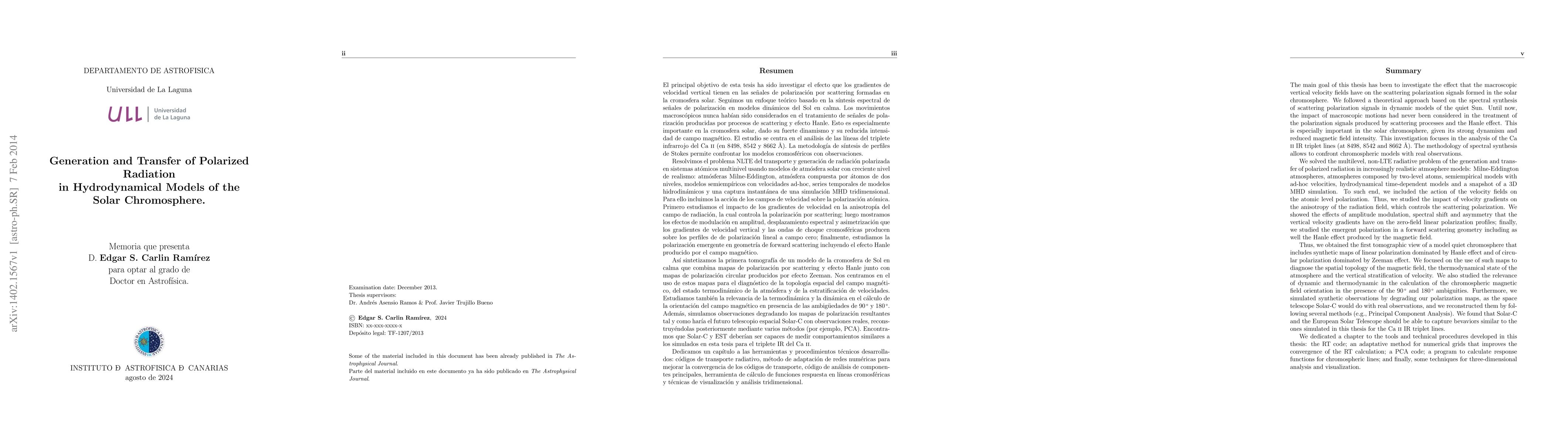 The main goal of this thesis has been to investigate the effects that the macroscopic vertical velocity fields have on the scattering polarization signals formed in the solar chromosphere. Until now, the impact of macroscopic motions had never been considered in the treatment of the polarization signals produced by scattering processes and the Hanle effect. This is especially important in the quiet solar chromosphere, given its strong dynamism and reduced magnetic field intensity. Our investigation focused in the solution of the multilevel, non-LTE radiative problem of the generation and transfer of polarized radiation in increasingly realistic atmosphere models (Milne-Eddington and two-level atom atmospheres, semi-empirical models with ad-hoc velocities, hydrodynamical time-dependent models and a snapshot of a 3D MHD simulation) for the Ca II IR triplet lines (at 8498, 8542 and 8662 A). As a particular result, we obtained the first synthetic tomography of a model quiet chromosphere that includes maps of linear polarization dominated by the Hanle effect and of circular polarization dominated by the Zeeman effect. We also studied the relevance of dynamic and thermodynamic in the inference of the chromospheric magnetic field orientation taking into account the 90{\deg} and 180{\deg} ambiguities and showing how velocity and temperature gradients can affect the diagnostic process. We show that Solar-C and the European Solar Telescope should be able to capture the dynamic effects simulated in this thesis for the Ca II IR triplet lines. Namely, the vertical velocity gradients are able to modulate the resulting scattering polarization amplitudes, specially in the presence of shock waves.