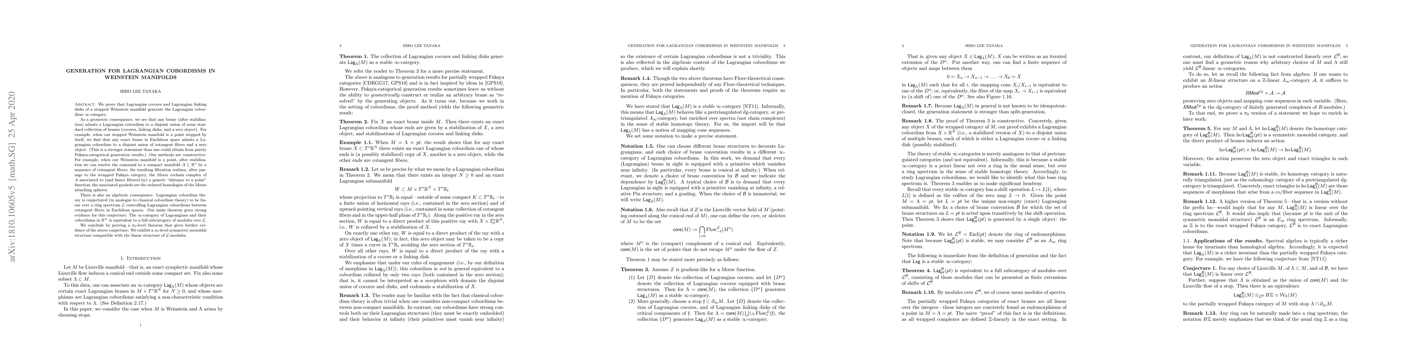 This paper proves that Lagrangian cocores and linking disks in stopped Weinstein manifolds generate the Lagrangian cobordism infinity-category, providing a constructive method for realizing exact branes as cobordisms to a standard collection of branes. It also supports the conjecture that Lagrangian cobordism theory is linear over a ring spectrum L, showing the equivalence of the Lagrangian cobordism category to a subcategory of L-modules and establishing a compatible π₀-level symmetric monoidal structure.