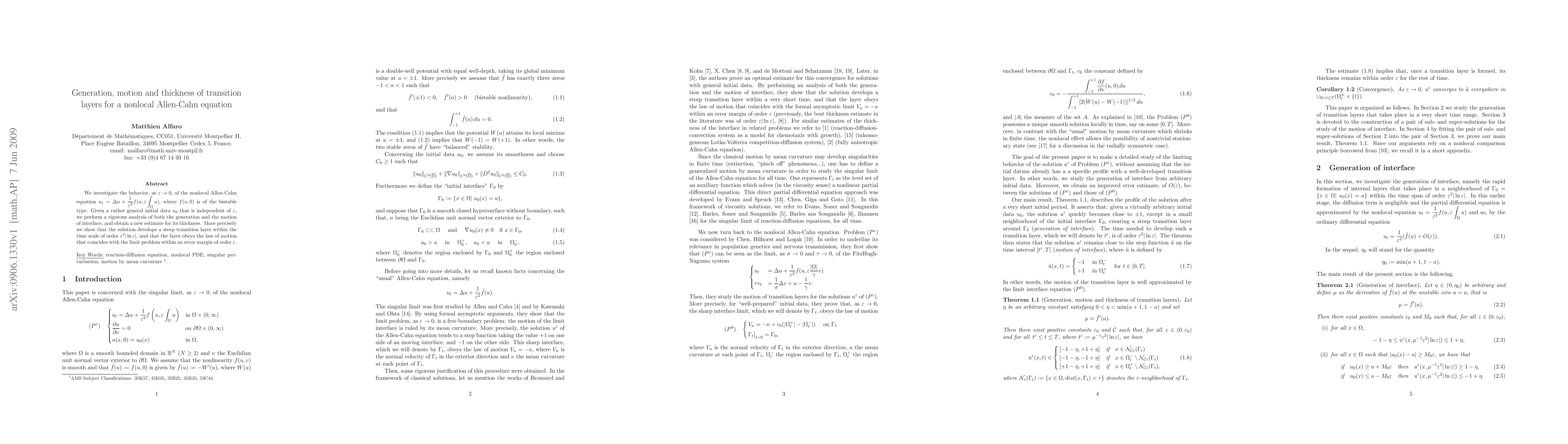 This paper rigorously analyzes the behavior of a nonlocal Allen-Cahn equation as a small parameter approaches zero, focusing on the generation and motion of interfaces, and provides a new estimate for the thickness of transition layers. The limit problem combines motion by mean curvature with a nonlocal effect, allowing for nontrivial stationary states.