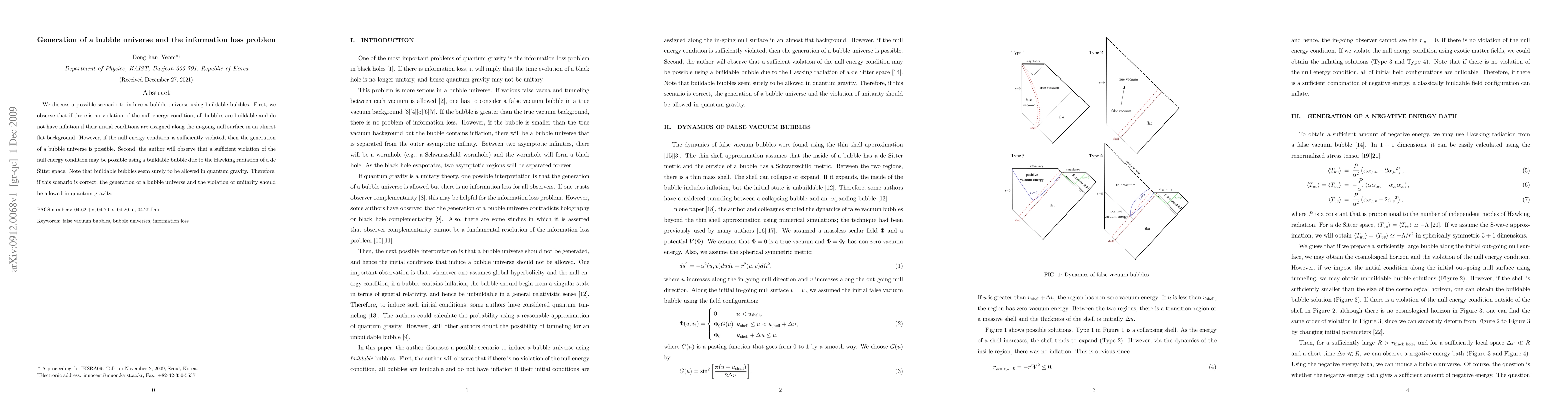 We discuss a possible scenario to induce a bubble universe using buildable bubbles. First, we observe that if there is no violation of the null energy condition, all bubbles are buildable and do not have inflation if their initial conditions are assigned along the in-going null surface in an almost flat background. However, if the null energy condition is sufficiently violated, then the generation of a bubble universe is possible. Second, the author will observe that a sufficient violation of the null energy condition may be possible using a buildable bubble due to the Hawking radiation of a de Sitter space. Note that buildable bubbles seem surely to be allowed in quantum gravity. Therefore, if this scenario is correct, the generation of a bubble universe and the violation of unitarity should be allowed in quantum gravity.