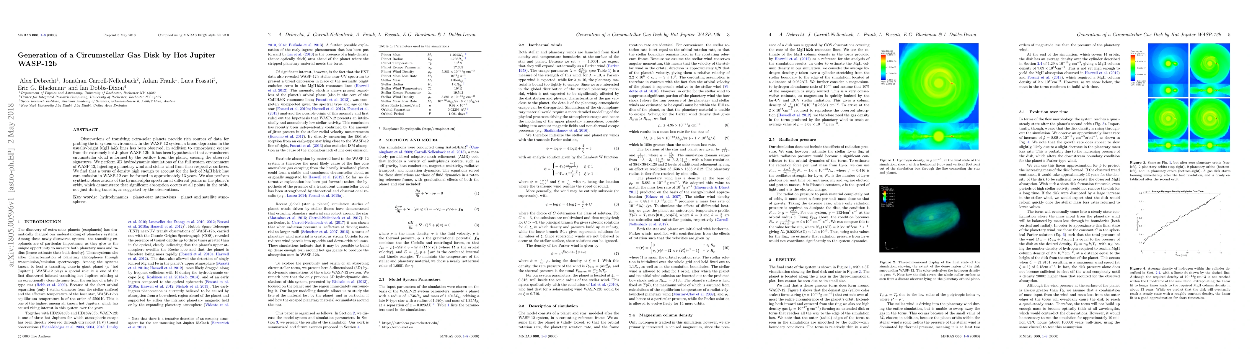 This paper investigates the formation of a circumstellar gas disk around the hot Jupiter WASP-12b, using 3D hydrodynamic simulations. The study finds that a dense torus can form in 13 years due to planetary outflow, explaining the observed depression in MgII h&k lines, and predicts significant Lyman-alpha absorption throughout the planet's orbit.
