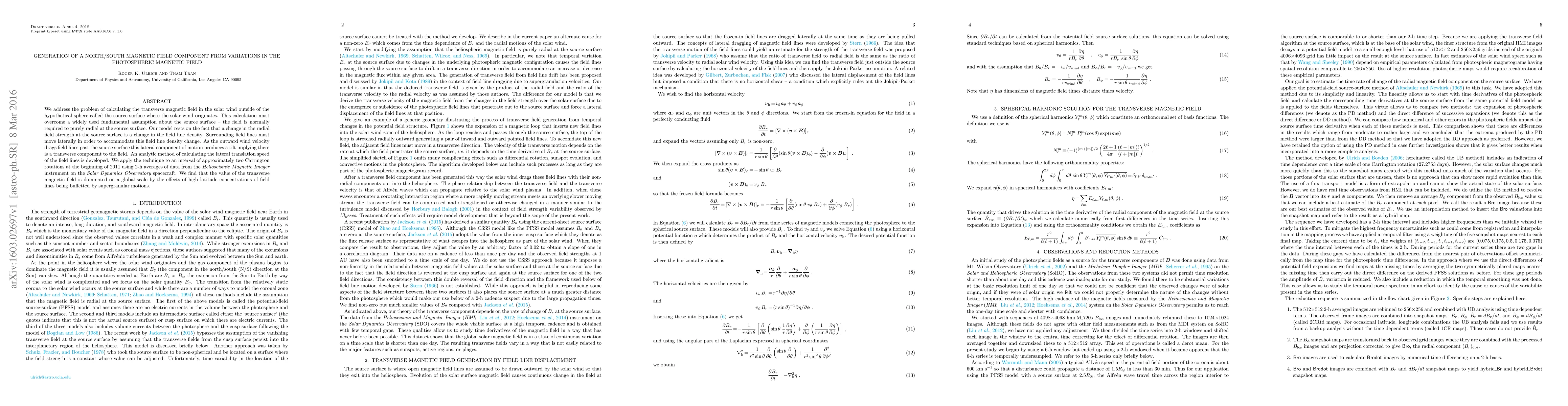 We address the problem of calculating the transverse magnetic field in the solar wind outside of the hypothetical sphere called the source surface where the solar wind originates. This calculation must overcome a widely used fundamental assumption about the source surface -- the field is normally required to purely radial at the source surface. Our model rests on the fact that a change in the radial field strength at the source surface is a change in the field line density. Surrounding field lines must move laterally in order to accommodate this field line density change. As the outward wind velocity drags field lines past the source surface this lateral component of motion produces a tilt implying there is a transverse component to the field. An analytic method of calculating the lateral translation speed of the field lines is developed. We apply the technique to an interval of approximately two Carrington rotations at the beginning of 2011 using 2-h averages of data from the Helioseismic Magnetic Imager instrument on the Solar Dynamics Observatory spacecraft. We find that the value of the transverse magnetic field is dominated on a global scale by the effects of high latitude concentrations of field lines being buffetted by supergranular motions.
