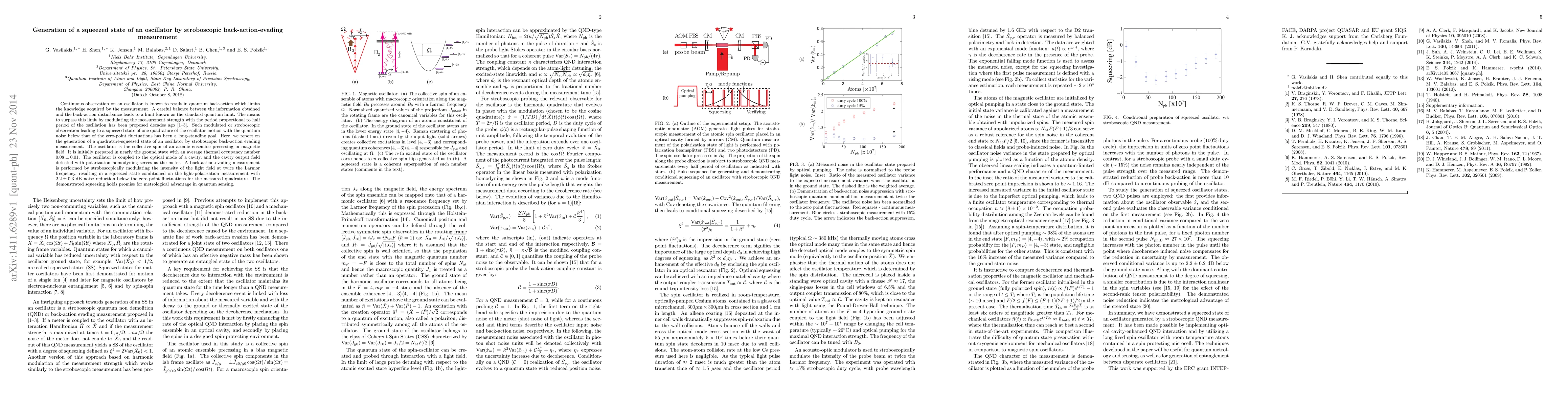 This paper reports the generation of a squeezed state of an oscillator through stroboscopic back-action-evading measurement, achieving 2.2 ± 0.3 dB noise reduction below zero-point fluctuations for the measured quadrature. The method involves modulating the measurement strength at twice the Larmor frequency, surpassing the standard quantum limit.
