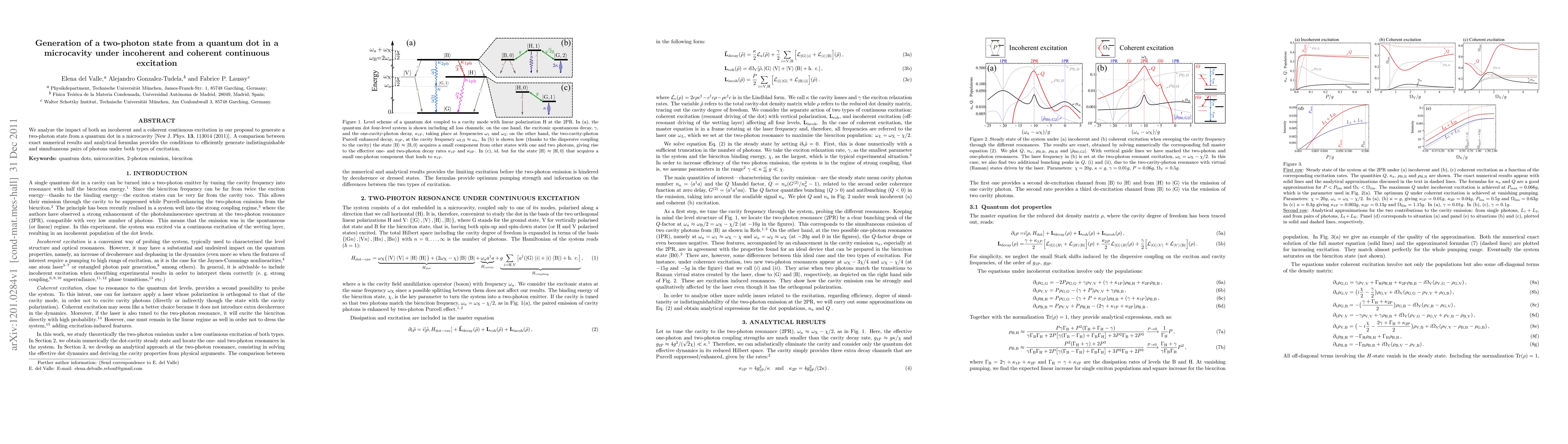 This paper investigates the generation of a two-photon state from a quantum dot in a microcavity under both incoherent and coherent continuous excitation. The study compares numerical results and analytical models to determine optimal conditions for generating indistinguishable photon pairs.
