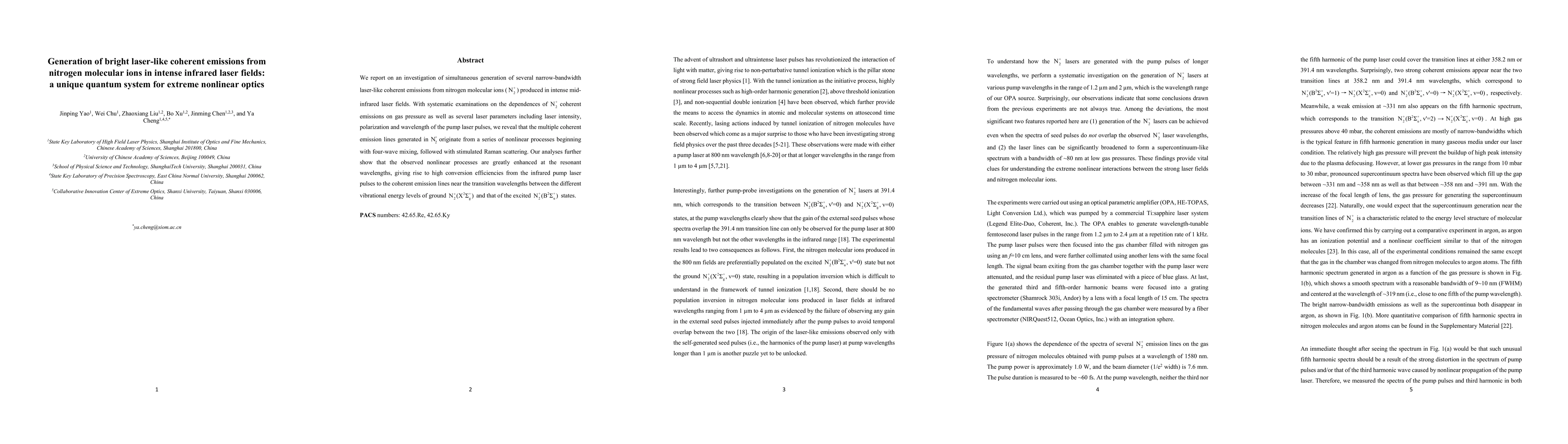 This research investigates the generation of multiple laser-like coherent emissions from nitrogen molecular ions in intense mid-infrared laser fields, revealing enhanced nonlinear processes such as four-wave mixing and stimulated Raman scattering, particularly at resonant wavelengths. The study highlights high conversion efficiencies from infrared pump lasers to coherent emission lines near vibrational energy transitions.