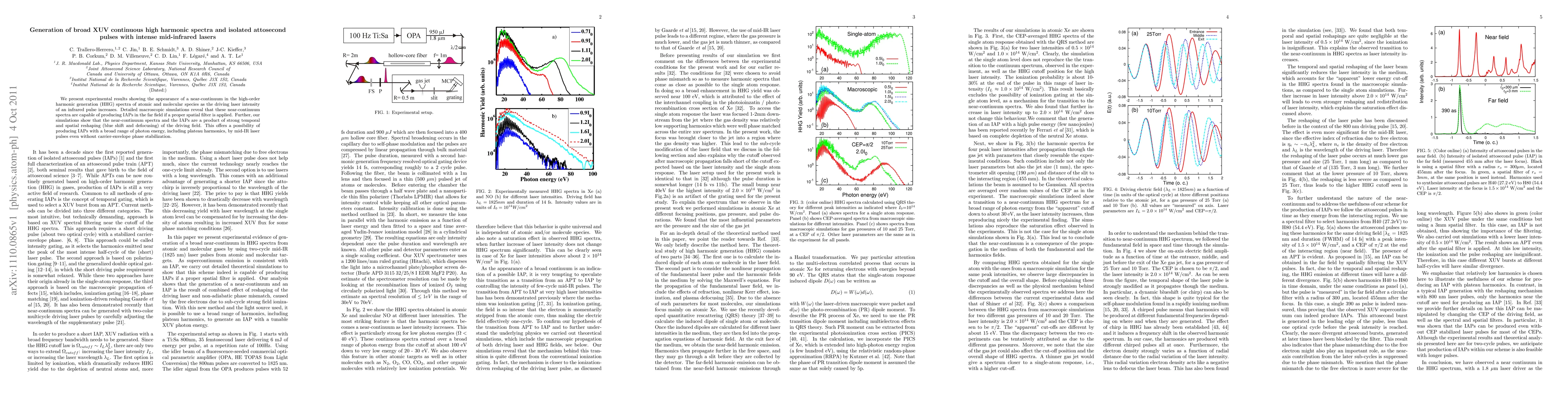 We present experimental results showing the appearance of a near-continuum in the high-order harmonic generation (HHG) spectra of atomic and molecular species as the driving laser intensity of an infrared pulse increases. Detailed macroscopic simulations reveal that these near-continuum spectra are capable of producing IAPs in the far field if a proper spatial filter is applied. Further, our simulations show that the near-continuum spectra and the IAPs are a product of strong temporal and spatial reshaping (blue shift and defocusing) of the driving field. This offers a possibility of producing IAPs with a broad range of photon energy, including plateau harmonics, by mid-IR laser pulses even without carrier-envelope phase stabilization.