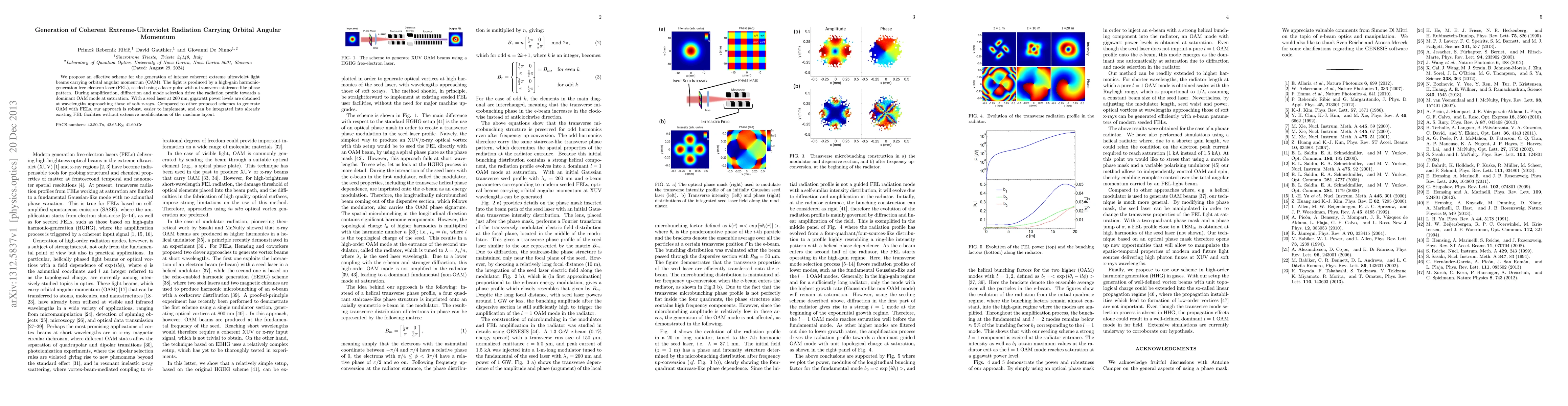 This paper proposes a method for generating intense coherent extreme ultraviolet light with orbital angular momentum using a high-gain harmonic-generation free-electron laser seeded by a phase-patterned laser pulse. The approach is robust, easier to implement, and adaptable to existing FEL facilities.