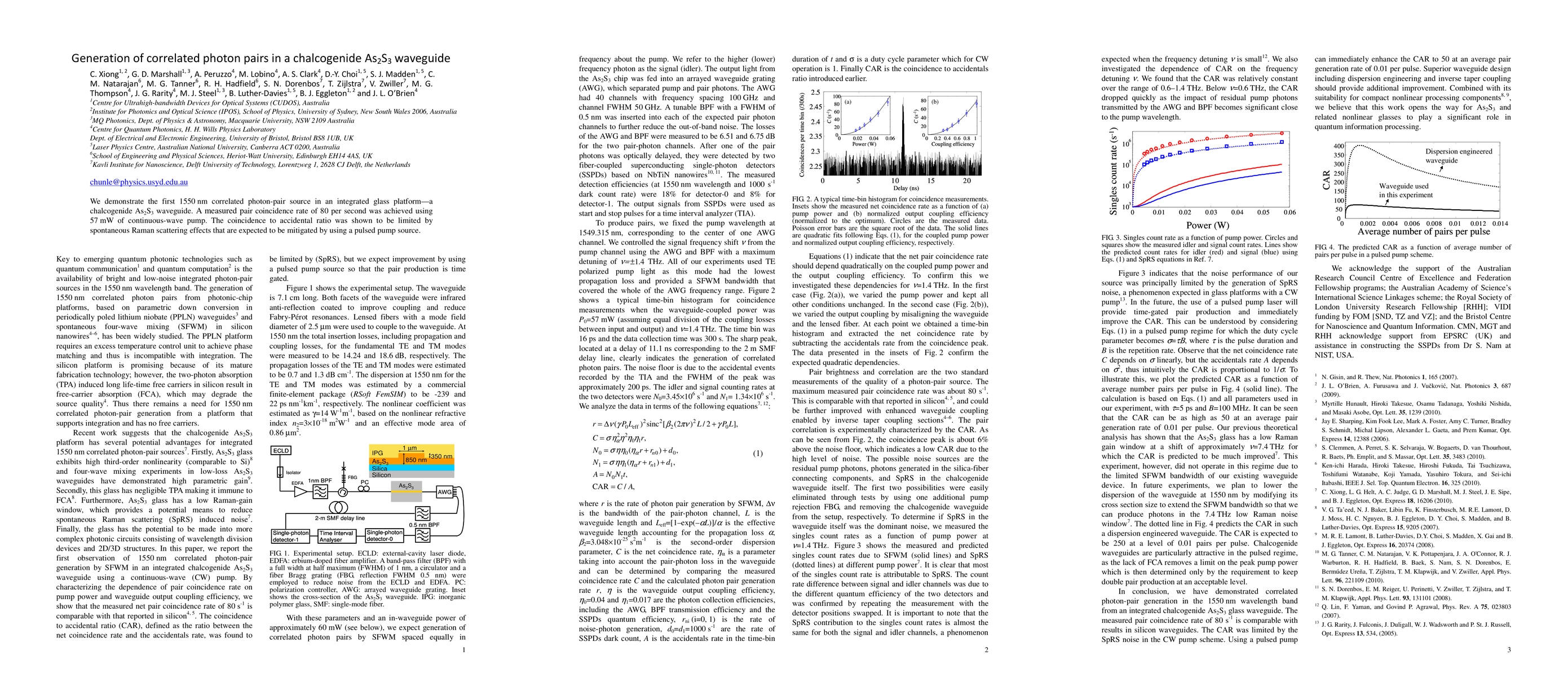 Researchers demonstrated a correlated photon-pair source in a chalcogenide As2S3 waveguide at 1550 nm, achieving a pair coincidence rate of 80 per second with a continuous-wave pump.