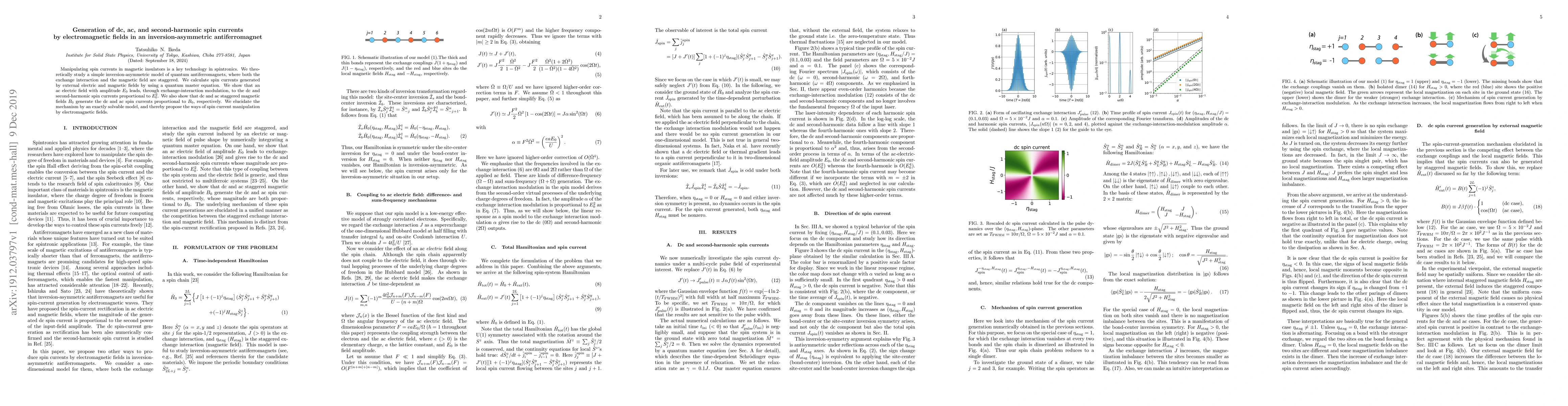 Manipulating spin currents in magnetic insulators is a key technology in spintronics. We theoretically study a simple inversion-asymmetric model of quantum antiferromagnets, where both the exchange interaction and the magnetic field are staggered. We calculate spin currents generated by external electric and magnetic fields by using a quantum master equation. We show that an ac electric field with amplitude $E_0$ leads, through exchange-interaction modulation, to the dc and second-harmonic spin currents proportional to $E_0^2$. We also show that dc and ac staggered magnetic fields $B_0$ generate the dc and ac spin currents proportional to $B_0$, respectively. We elucidate the mechanism by an exactly solvable model, and thereby propose the ways of spin current manipulation by electromagnetic fields.