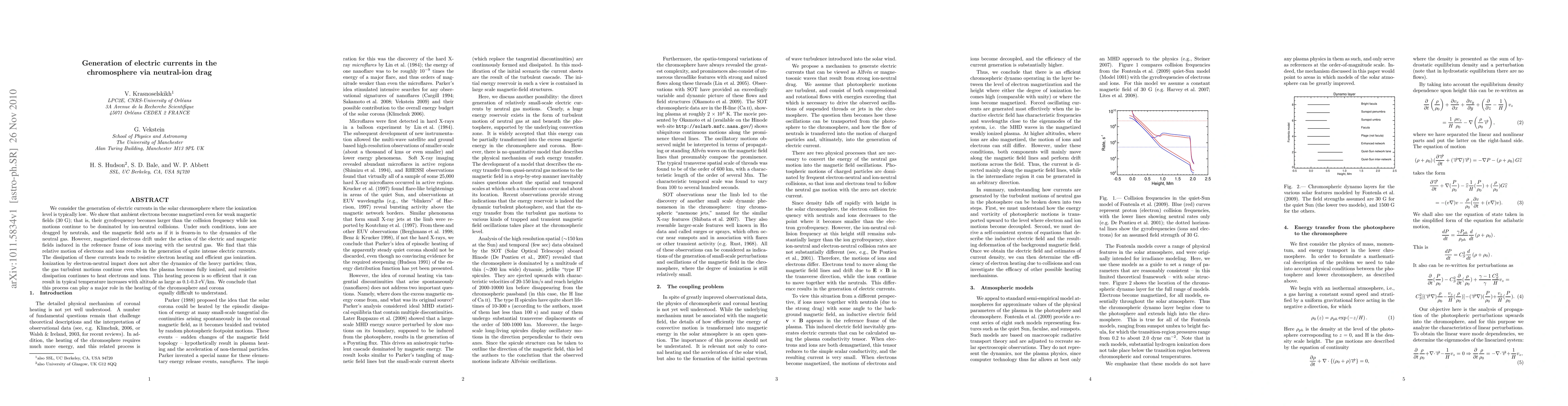 This paper investigates the generation of electric currents in the solar chromosphere, demonstrating that even weak magnetic fields can magnetize ambient electrons, leading to intense electric currents due to the relative motion of electrons and ions. These currents efficiently heat electrons and ions, contributing significantly to the temperature increases observed in the chromosphere and corona.