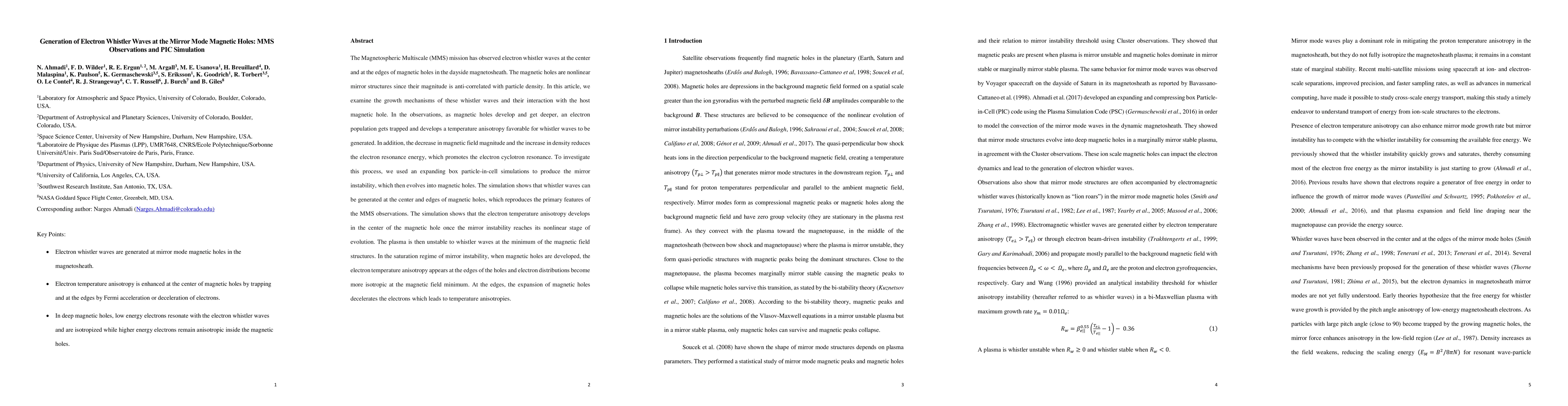 Researchers used MMS observations and simulations to show that electron whistler waves form at magnetic holes in the dayside magnetosheath as electrons become trapped and temperature anisotropy develops, reproducing primary features of the observations.