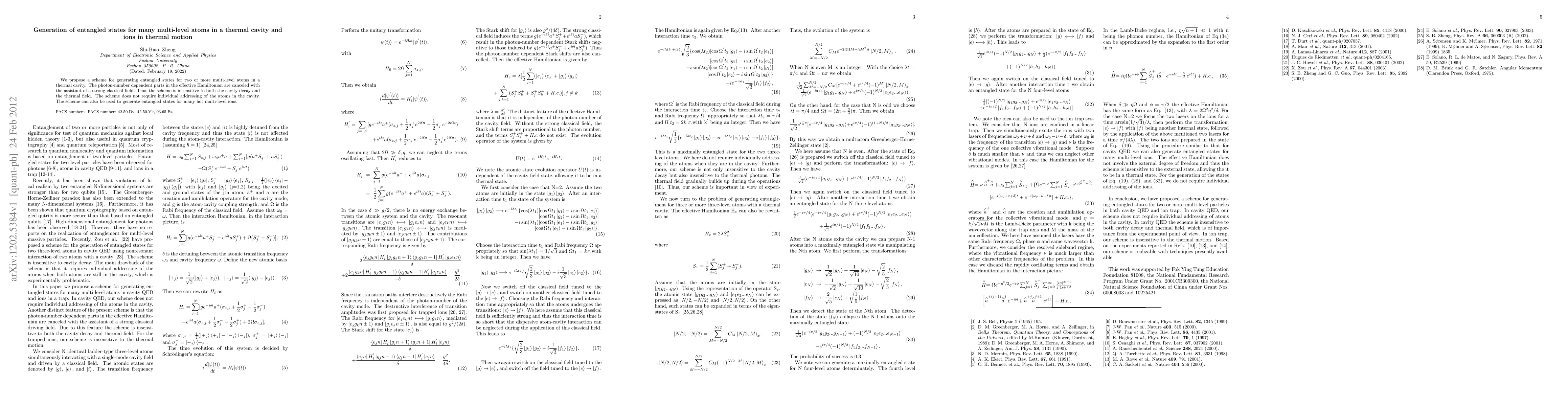 This paper proposes a novel scheme for generating entangled states among multi-level atoms in a thermal cavity, which remains effective despite cavity decay and thermal motion. The method cancels photon-number dependent effects using a strong classical field, allowing for entanglement generation without individual addressing of atoms.