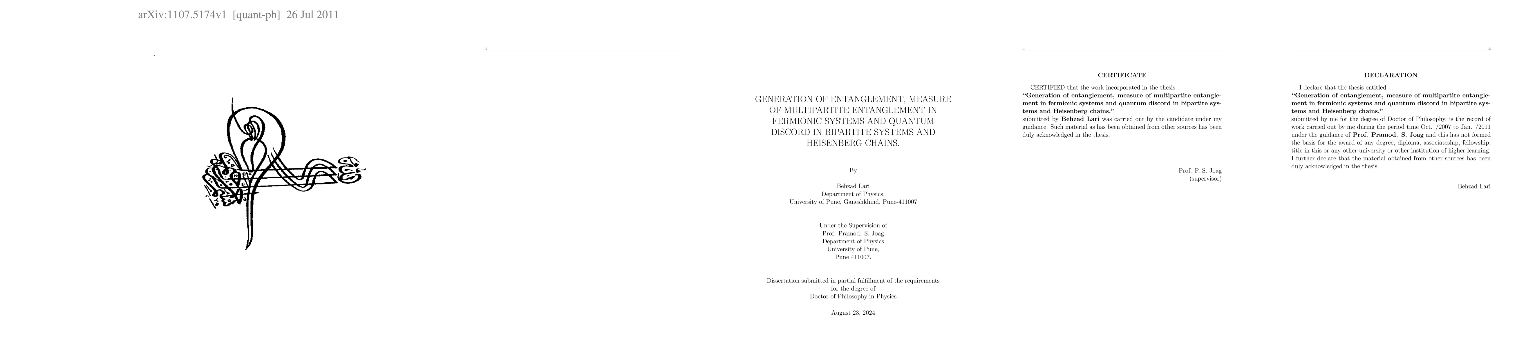 This research explores the generation of entanglement in various qubit systems and indistinguishable fermionic systems, alongside quantum discord in Heisenberg chains and a geometric measure of quantum discord in bipartite quantum states. The study contributes to the understanding of multipartite entanglement and quantum discord.