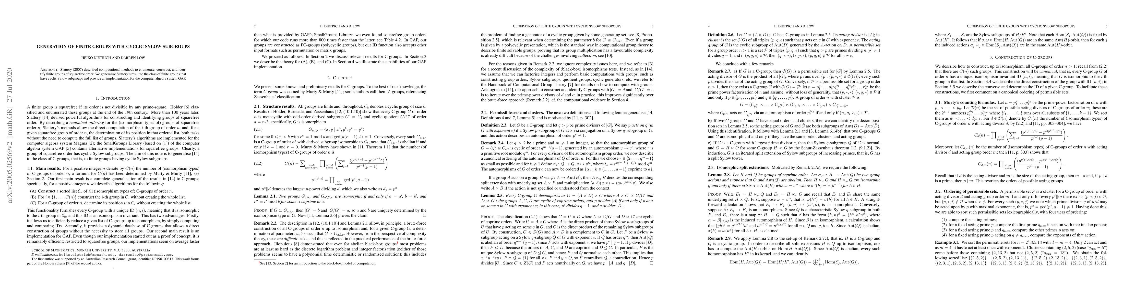 Slattery (2007) described computational methods to enumerate, construct, and identify finite groups of squarefree order. We generalise Slattery's result to the class of finite groups that have cyclic Sylow subgroups and provide an implementation for the computer algebra system GAP.
