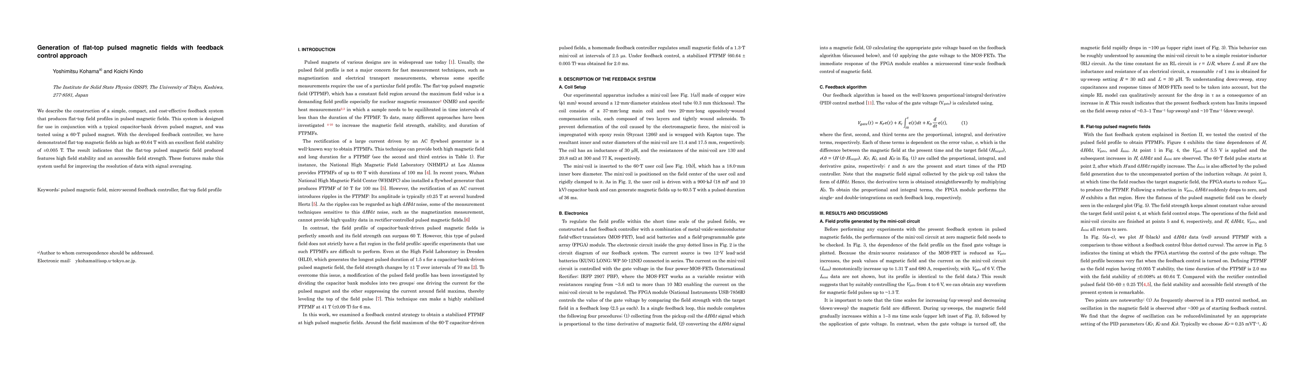 This paper presents a cost-effective feedback system for generating stable, high-strength flat-top pulsed magnetic fields, achieving up to 60.64 T with a stability of ±0.005 T, enhancing data resolution through signal averaging.