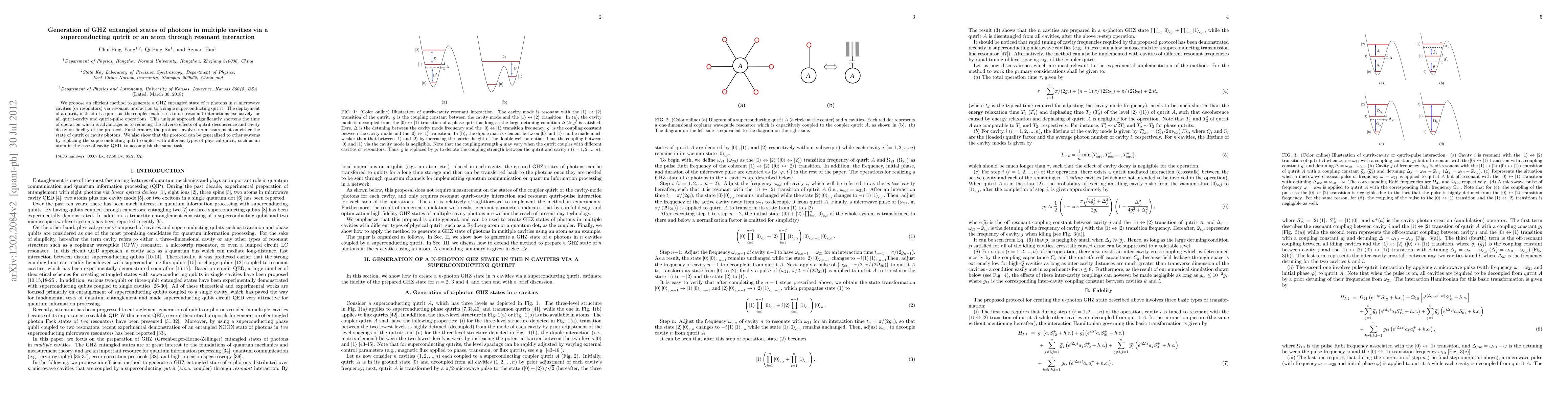 This paper proposes a method to generate GHZ entangled states of n photons in n microwave cavities using a superconducting qutrit, which employs resonant interactions to significantly reduce operation time and mitigate decoherence. The protocol can be adapted to use different physical qutrits, such as atoms in cavity QED.