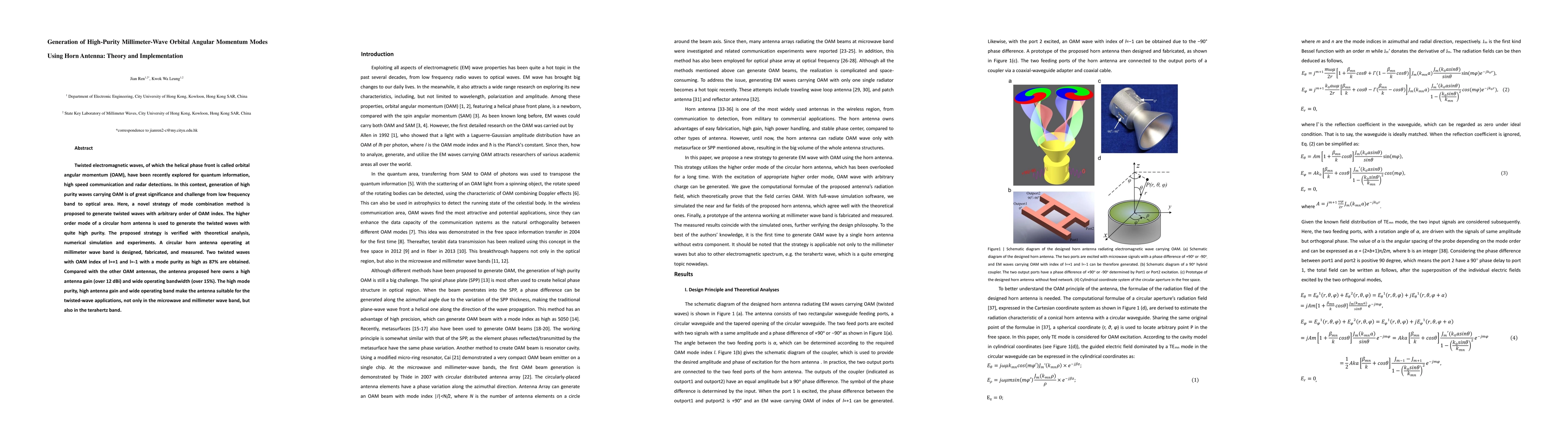 This paper proposes a novel mode combination method to generate high-purity millimeter-wave orbital angular momentum (OAM) modes using a circular horn antenna. The method achieves high mode purity, high antenna gain, and wide bandwidth, making it suitable for applications in quantum information, communication, and radar detection.