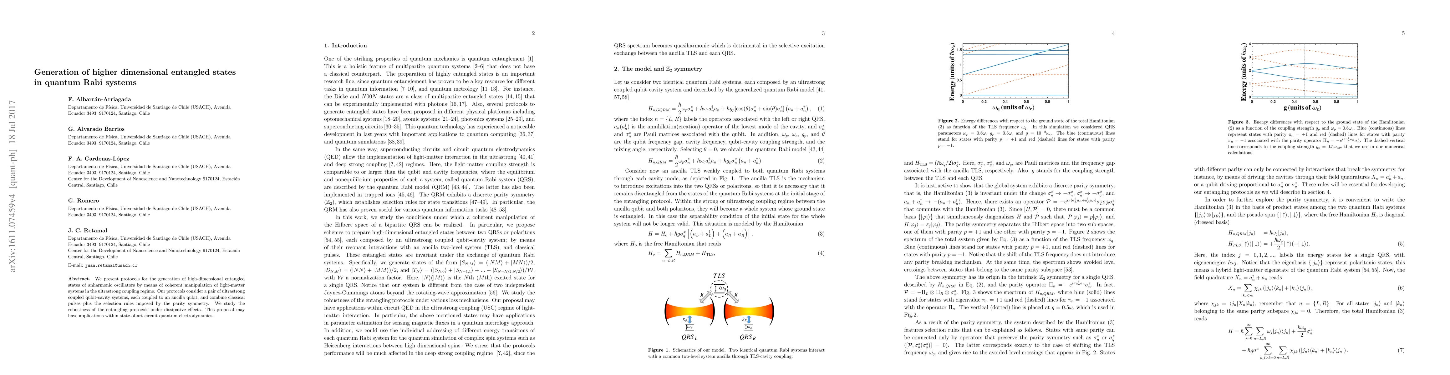 This paper proposes protocols for generating high-dimensional entangled states in quantum Rabi systems through coherent manipulation in the ultrastrong coupling regime, utilizing classical pulses and parity symmetry selection rules. The study assesses the robustness of these protocols against dissipative effects, with potential applications in advanced circuit quantum electrodynamics.