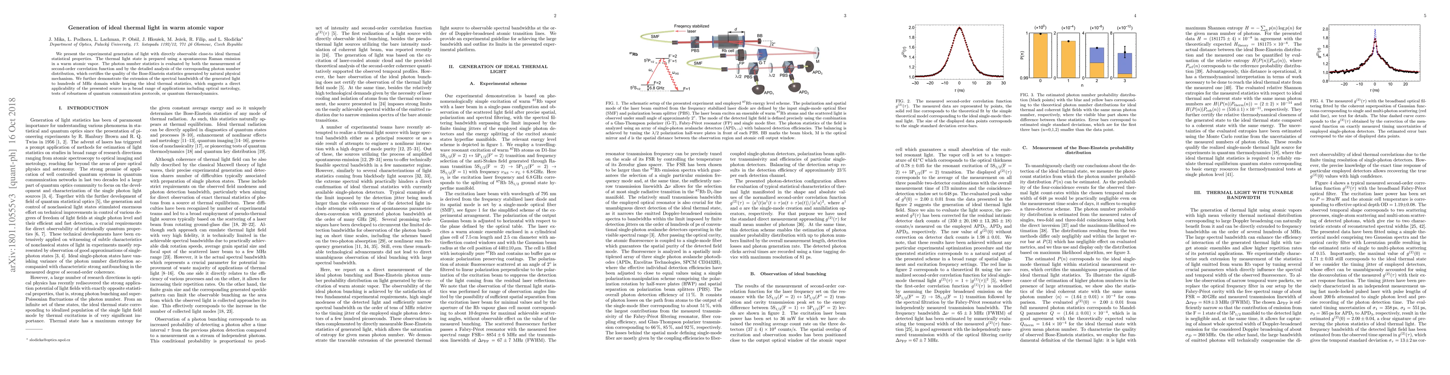 This paper details the experimental generation of ideal thermal light using spontaneous Raman emission in warm atomic vapor, demonstrating close-to-ideal thermal statistical properties and a broad spectral bandwidth, thus showing potential applications in optical metrology and quantum communication.