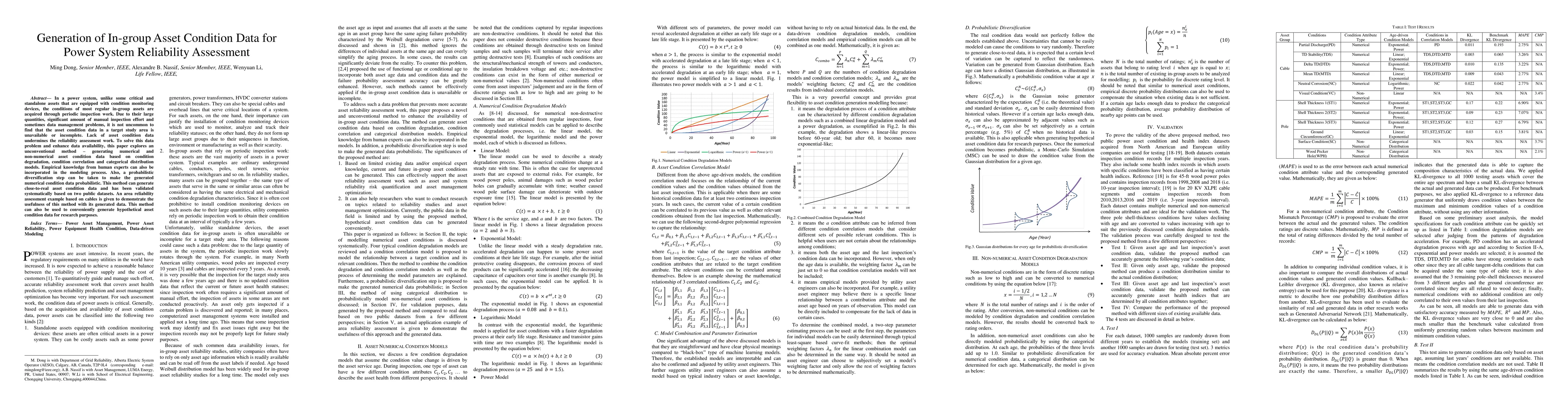 This paper proposes a method to generate realistic in-group asset condition data for power system reliability assessment using condition degradation, correlation, and distribution models, supplemented by expert knowledge and probabilistic diversification. The method's effectiveness is demonstrated through validation on public datasets and an example reliability assessment.